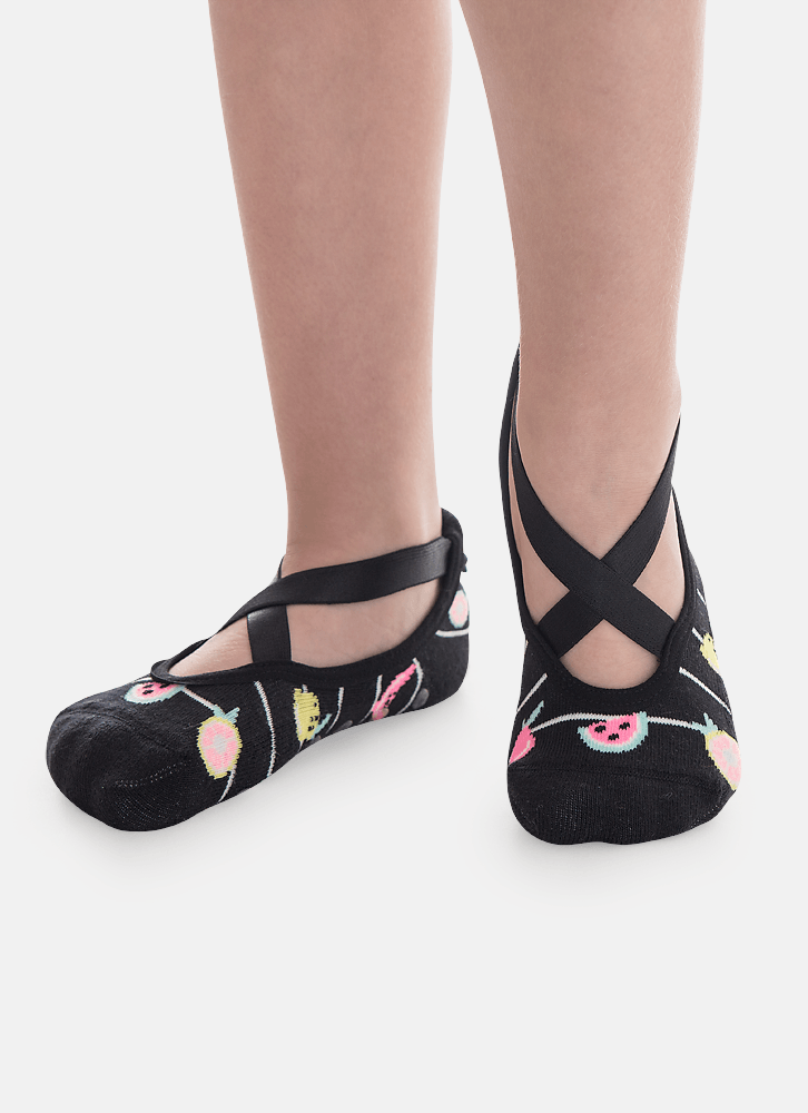 A meia sapatilha com modelagem ballet atoalhada com desenho de frutas. Produzida com algodão macio em sua maior parte poliamida. Possui cano mais alto na parte do calcanhar. Possui acabamento em viés e elástico confortável. Solado com antiderrapante com aroma de morango. Indicação de uso: Ideal para praticar exercícios e brincadeiras sem o calçado e uso no dia a dia em casa. Instruções de Lavagem: Lavagem a mão Não alvejar Instruções de Conservação: Não secar em tambor Não passar Não limpar a seco (MAIS INFORMAÇÕES, VIDE NA ETIQUETA) Instruções de Garantia: Deverá ser encaminhado dentro na embalagem original ACOMPANHADO DE NOTA FISCAL E com todos os itens constante na solicitação da compra.