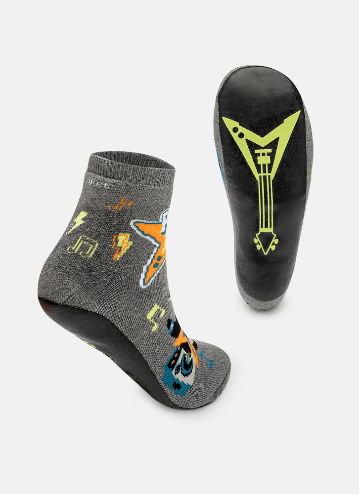 Meia Soquete Com Sola Emborrachada Menino Teen Tubrão Rockstar