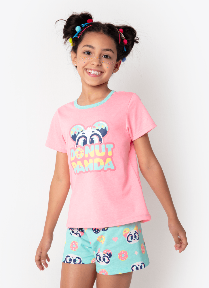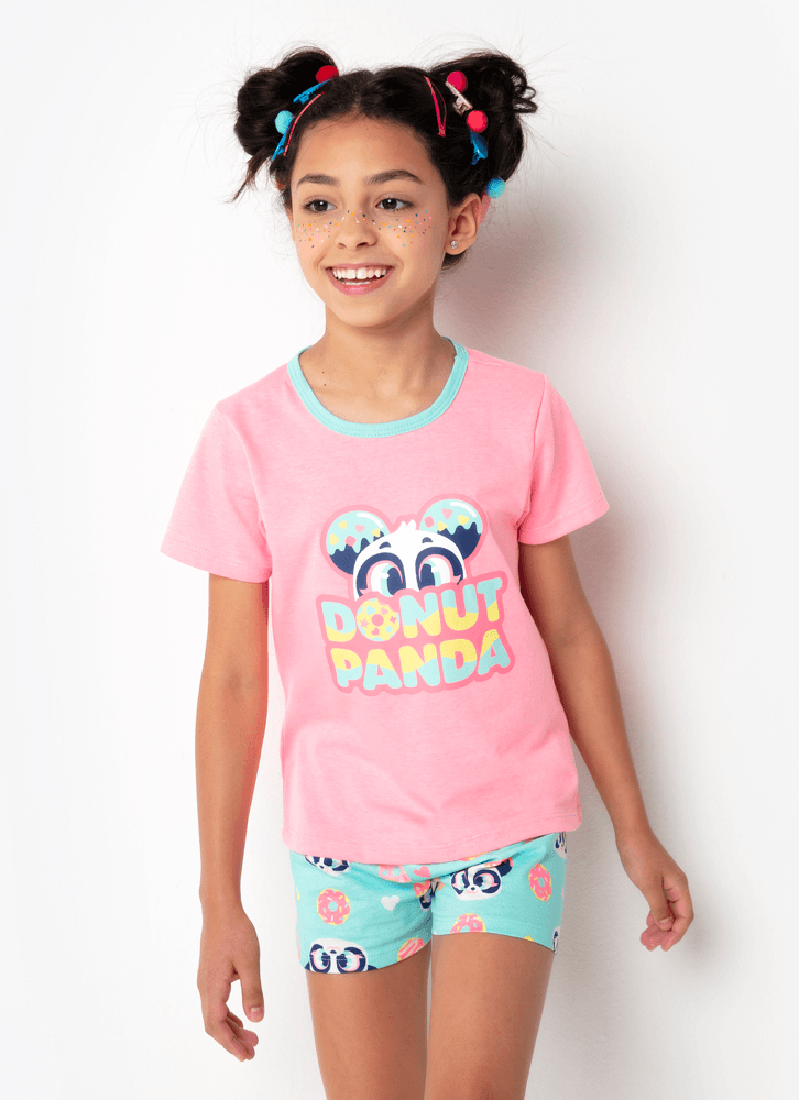 Pijama manga curta com estampa divertida e exclusiva de Panda Donuts O Pijama Manga Curta da Puket proporciona conforto durante a vestibilidade e ótimo caimento. Perfeito para noites tranquilas de sono e momentos de relaxamento em casa. Pijama com camiseta manga curta Gola redonda Camiseta com estampa de silk localizado na frente Shorts estampado com elástico macio embutido na cintura Lavagem e conservação: Lavagem à mão, não alvejar; não secar em tambor; não limpar a seco; secagem em varal por gotejamento a sombra; não passar ou utilizar vaporização; (mais informações, vide na etiqueta). Garantia: Deverá ser encaminhado dentro da embalagem original, sem indicações de uso, acompanhado de nota fiscal e com todos os itens constante na solicitação da compra.