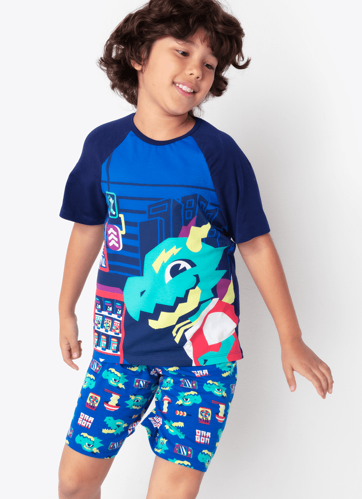 Pijama Manga Curta Viscolycra Menino Teen Dragão Street