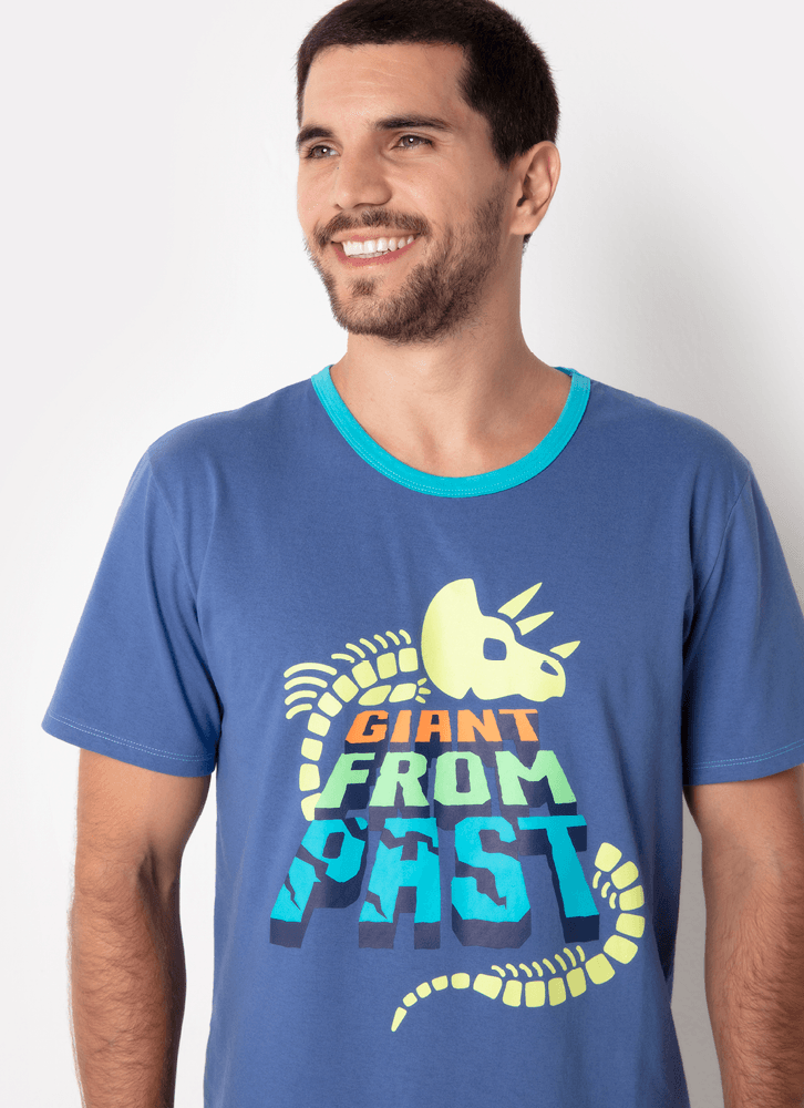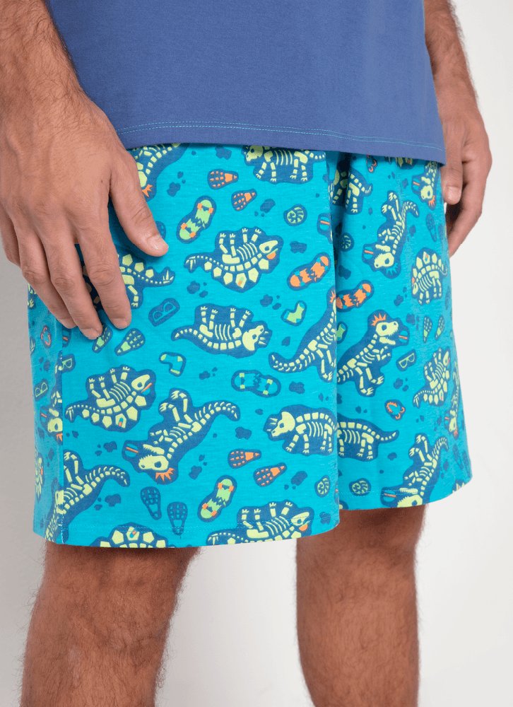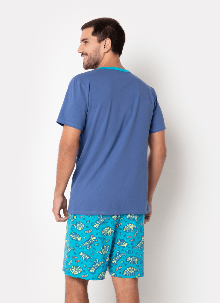 Pijama Manga Curta Masculino Algodão Dinossauro Fósseis