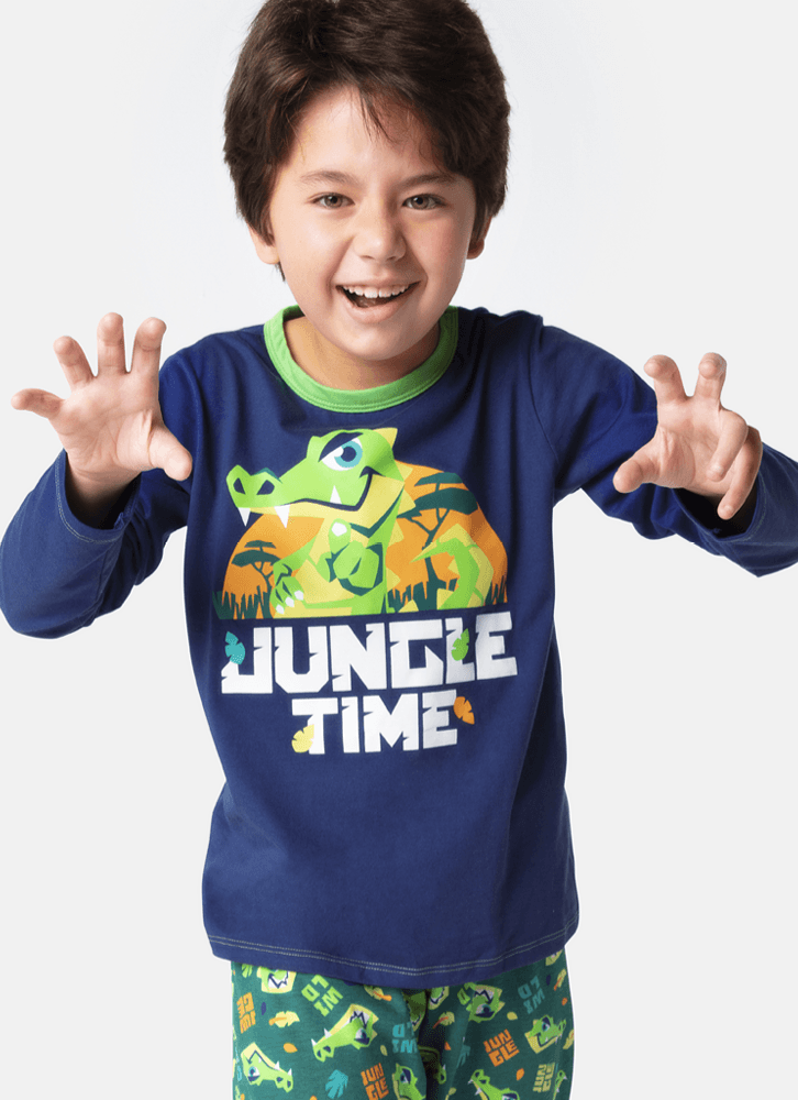 Pijama Manga Longa Menino Teen Jacaré Jungle