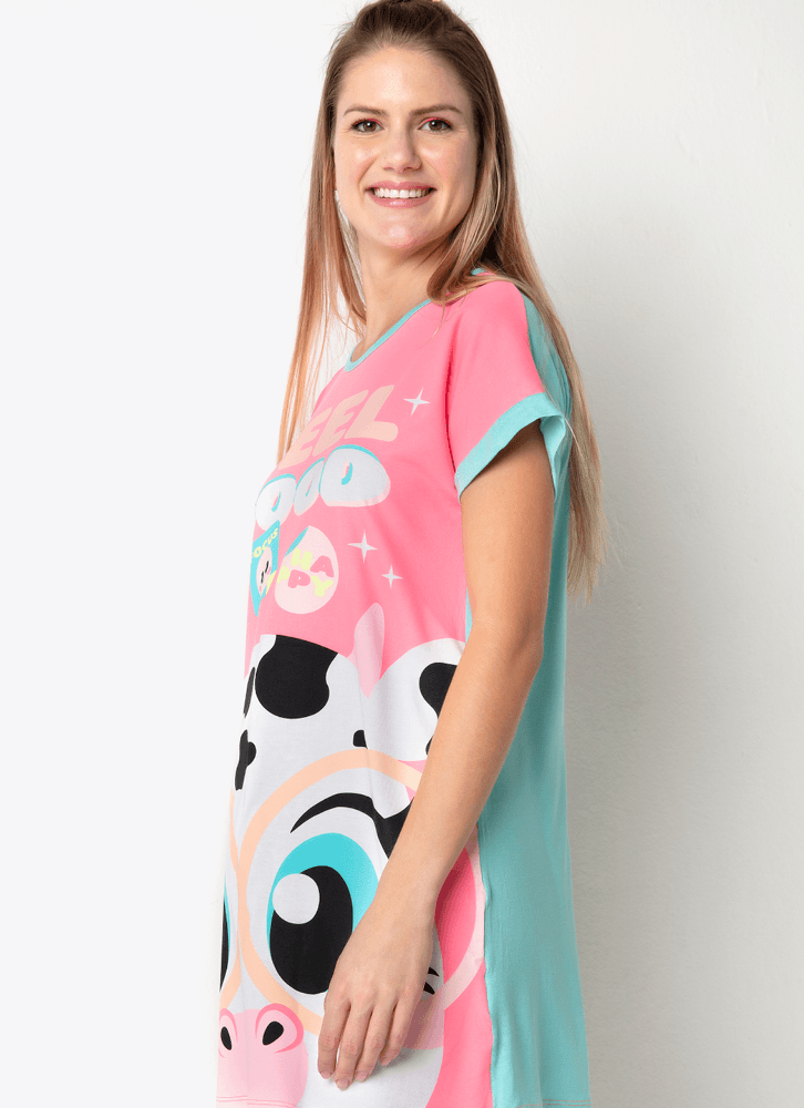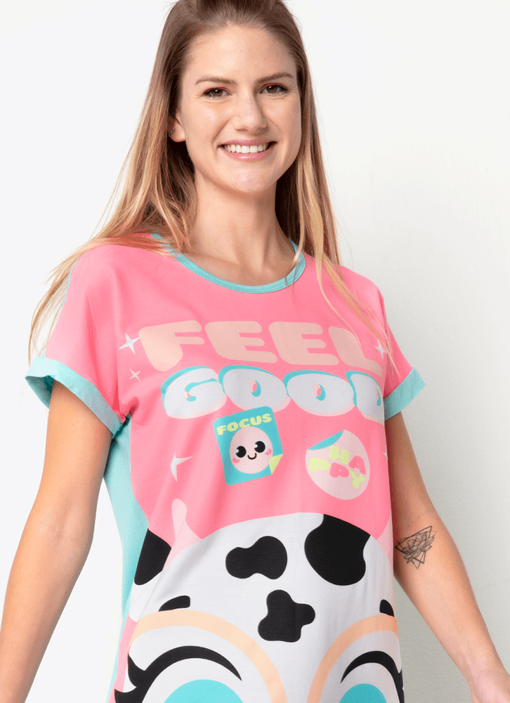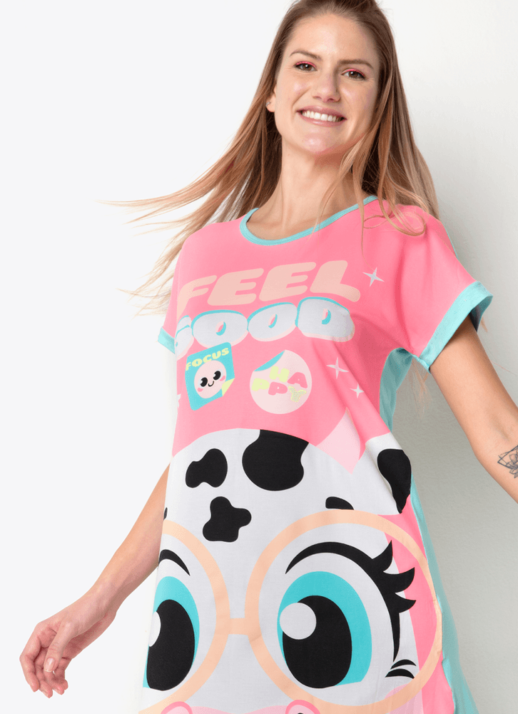 Descrição: Camisola com estampa exclusiva Vaca <3. Para noites tranquilas de sono e momentos de relaxamento em casa. Detalhes: • Camisola de manga curta em contraste. • Estampa frontal • Tecido cor sólida nas costas. • Gola redonda. • A camisola de viscolycra da Puket proporciona conforto durante a vestibilidade, toque macio e ótimo caimento. • Tecido: Camisola lado frente (estampado) de viscolycra. • Mangas, viés e costas: meia malha de poliéster com viscose e elastano. Cuidados: Lavagem e conservação: Lavagem à mão, não alvejar; não secar em tambor; não Passar; não limpar a seco (mais informações, vide na etiqueta). Garantia: deverá ser encaminhado dentro da embalagem original; sem indicações de uso; acompanhado de nota fiscal e com todos os Itens constante na solicitação da compra.