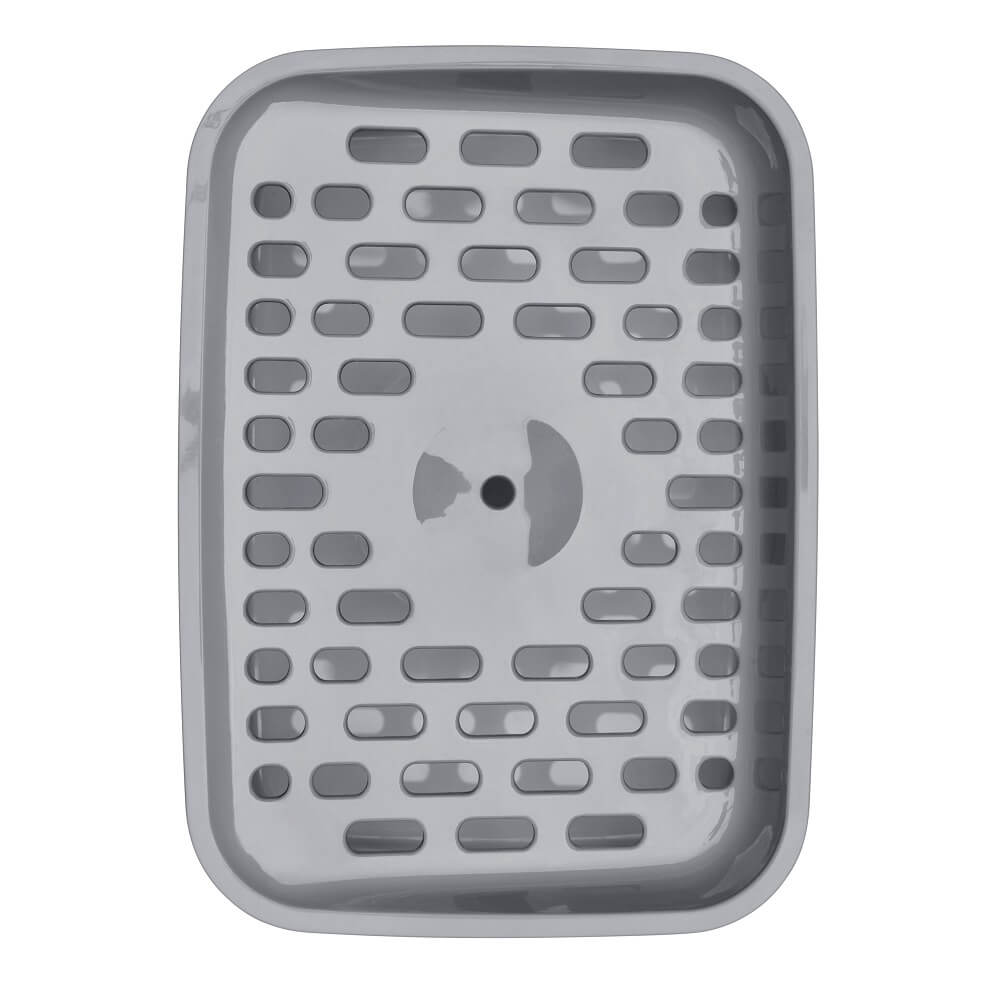 A bandeja coletora separa a água da esponja e o suporte mantém a esponja elevadas para uma secagem rápida