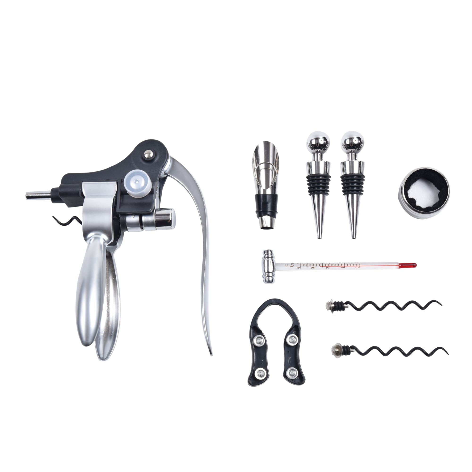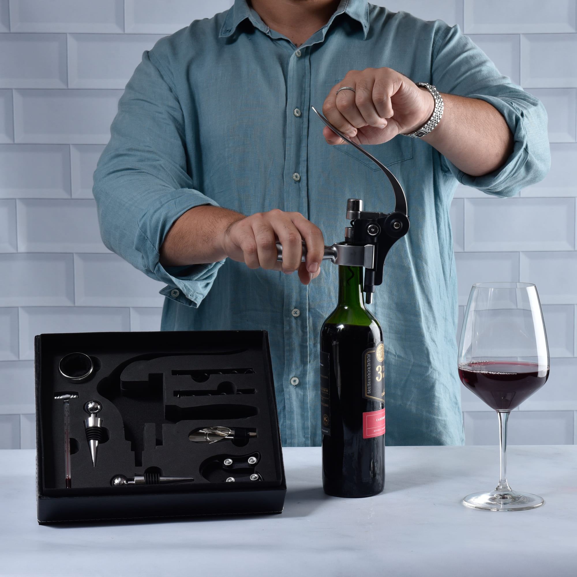 Composta por acessórios práticos e elegantes, especialmente projetados para cada momento do processo; desde a abertura até a conservação. Perfeito para amantes de uma das bebidas mais apreciadas de todo o mundo, e também ótima opção para presente.