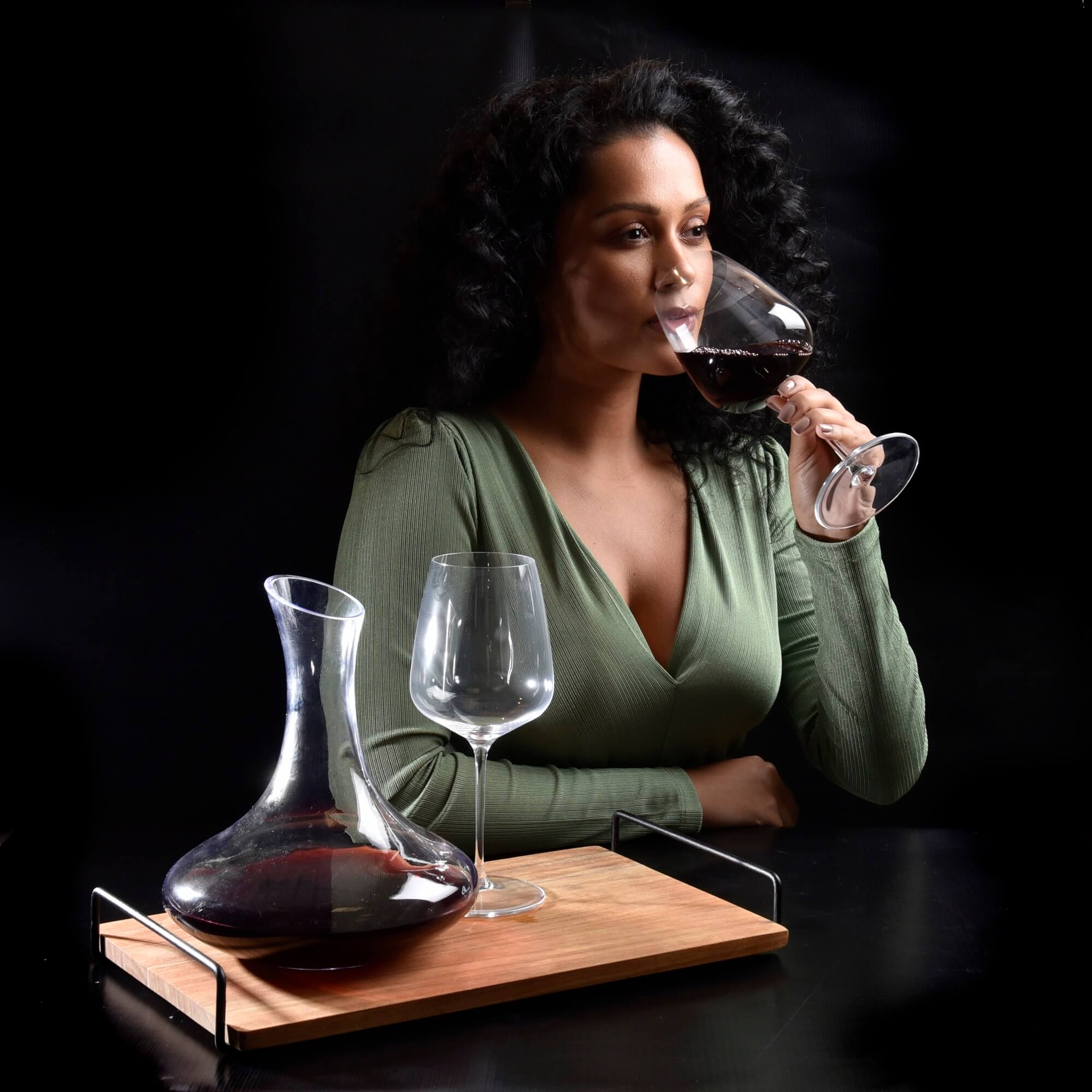 O Decanter Oberhau da Kenya, possui formato curvado e inclinado proporcionando uma aparência elegante e moderna, ideal para apreciadores de vinho, sua base larga permite maior contato do vinho com o oxigênio, realçando aromas e sabores.