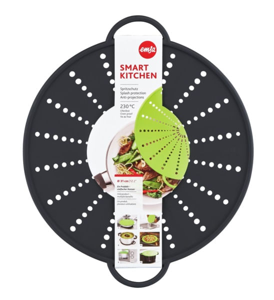 A Tampa Multiuso 6 em 1 da EMSA é a aliada ideal para quem busca versatilidade e eficiência no dia a dia. Produzida em silicone resistente ao calor, ela suporta até 230?°C e se adapta a diferentes necessidades com um único produto: tampa antirrespingos, descanso de panela, protetor contra transbordamento, escorredor seguro, tampa para micro-ondas e base para pizzas crocantes.