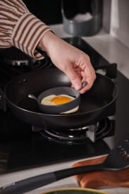 Transforme suas manhãs com o Anel de ovo da Culinare. Este acessório é ideal para criar ovos fritos, panquecas ou hambúrgueres com bordas perfeitas e consistentes.