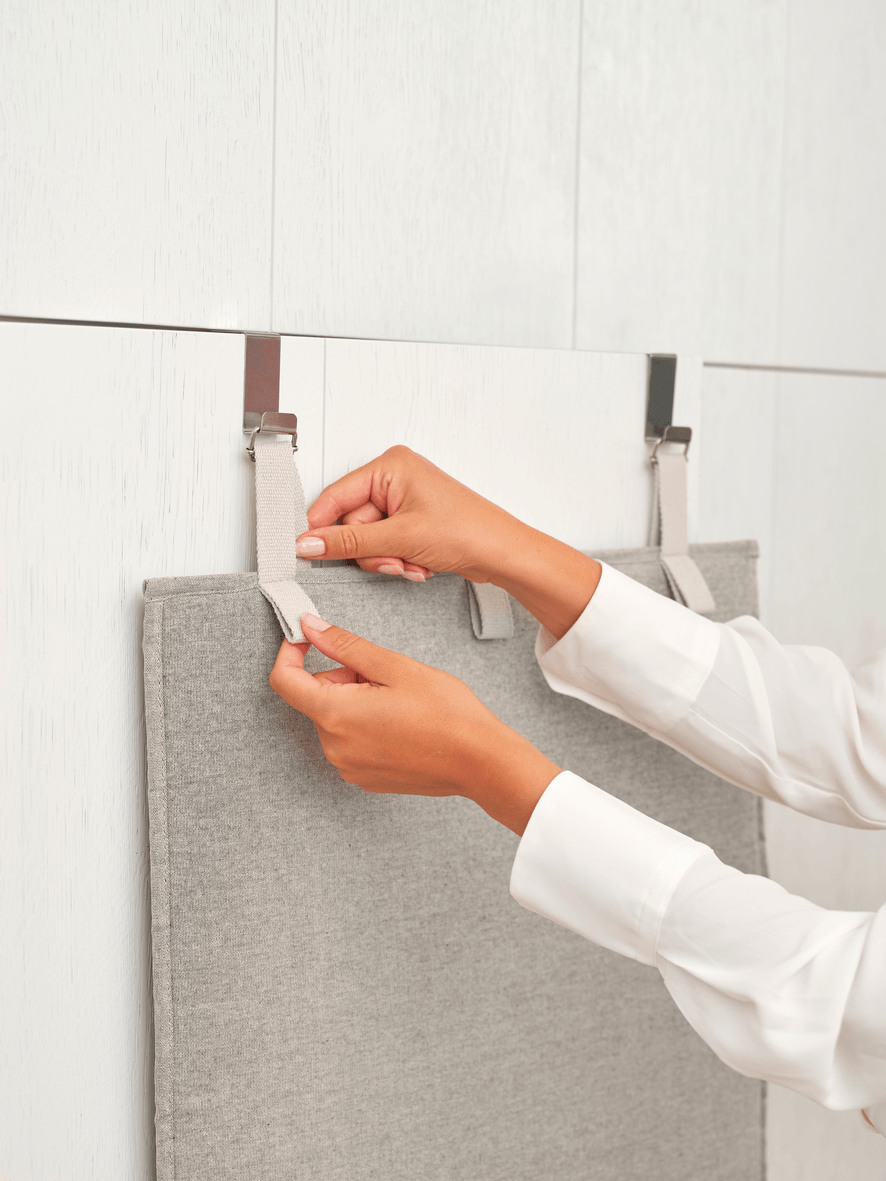 A tábua para vaporização vertical da linha Brabantia é prática e eficiente: basta pendurá-la em portas ou armários para transformar o espaço em uma estação de vapor instantânea.