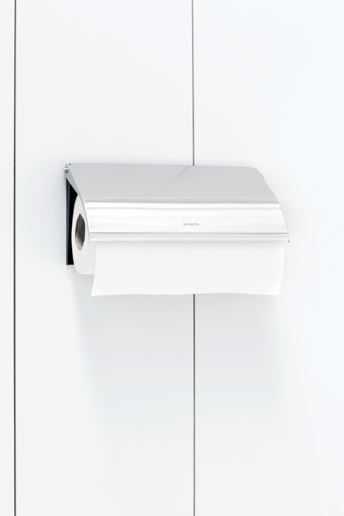 O suporte de papel toalha de parede Brabantia é sinônimo de praticidade e sustentabilidade. Compatível com rolos padrão, ele facilita o reabastecimento e oferece abertura dupla para uso destro ou canhoto.
