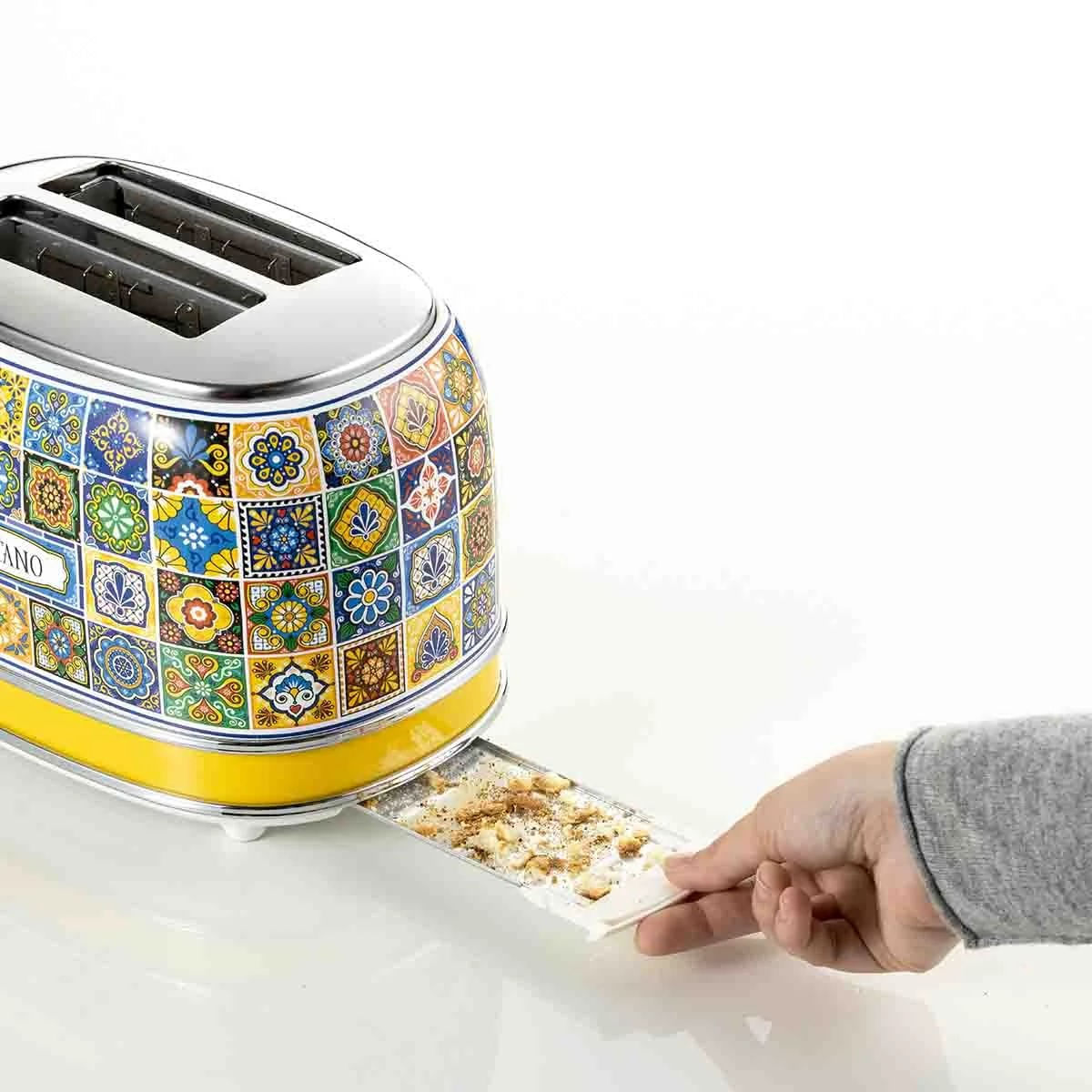 A Torradeira Elétrica da linha Positano da Ariete torra 2 fatias de pão ao mesmo tempo, com 2 compartimentos separados e a possibilidade de escolher o grau de dourar e torrar do pão e torrada de sua preferência, graças aos 6 níveis que podem ser selecionados usando o botão.