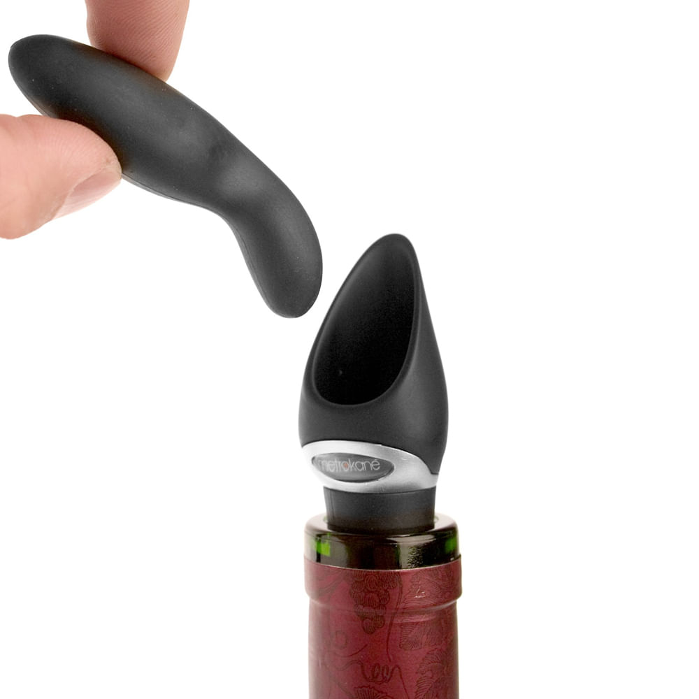 Esta tampa para garrafa é ideal para armazenar vinhos em curto prazo. Sua vedação ocorre graças ao formato do bico especialmente projetado para se encaixar perfeitamente na garrafa, enquanto o acabamento aveludado garante sofisticação e durabilidade.