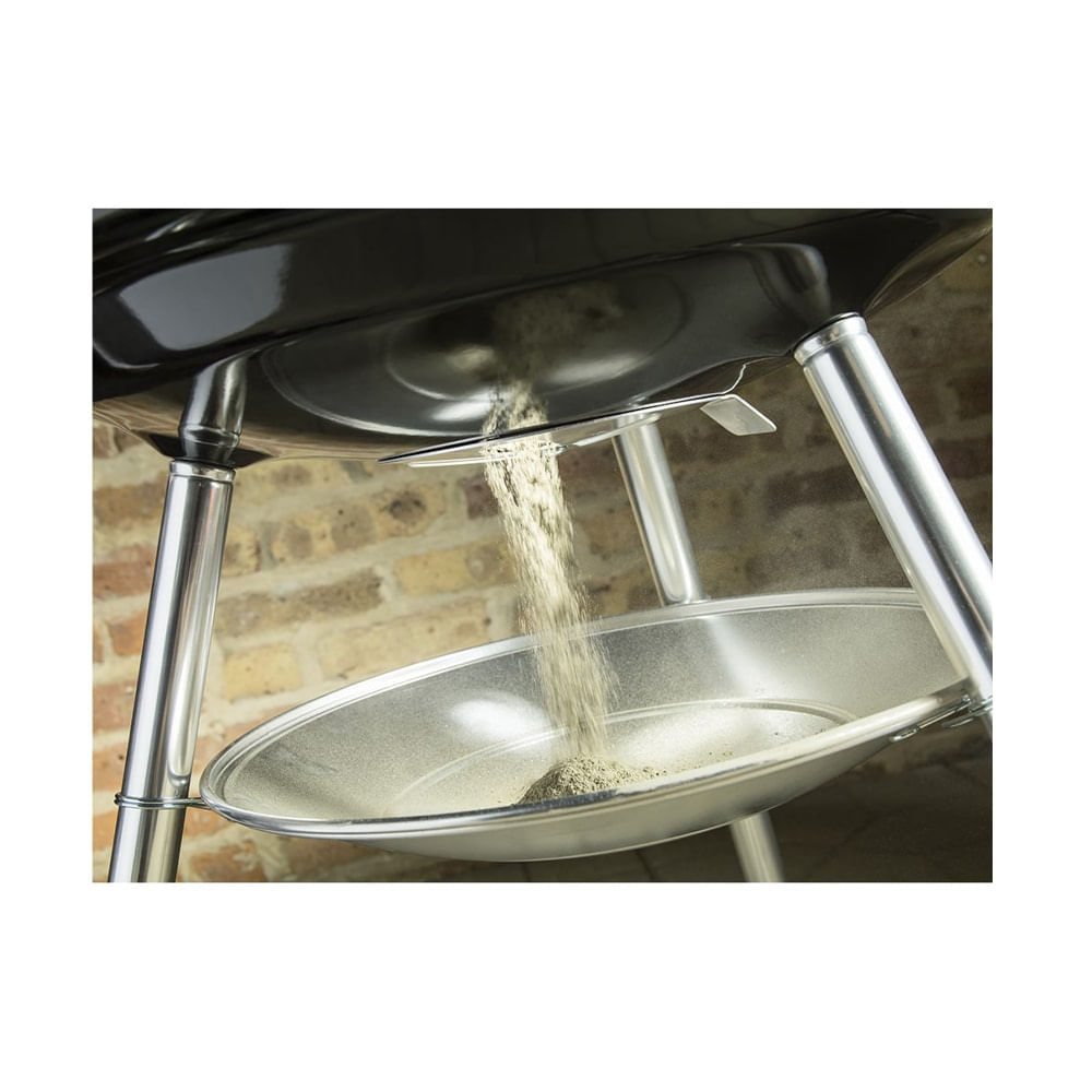 A grande vantagem da churrasqueira com tampa é que sem ar, não tem chama. Fabricado pela americana Weber, a churrasqueira possui 52cm diâmetro, prato removível em alumínio para coletar as cinzas com facilidade, sistema de entrada e saída de ar em alumínio que não enferruja e proporciona a ventilação perfeita para o preparo do churrasco, suporte para tampa para facilitar o manuseio, 2 alças em nylon reforçado com fibra de vidro, ultra resistente e rodas resistentes.