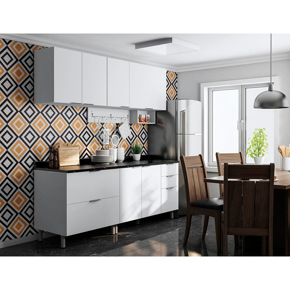 Cozinha Compacta Bartira Rubi com 6 Portas, 5 Gavetas e 4 Prateleiras - 200cm de largura - Branco