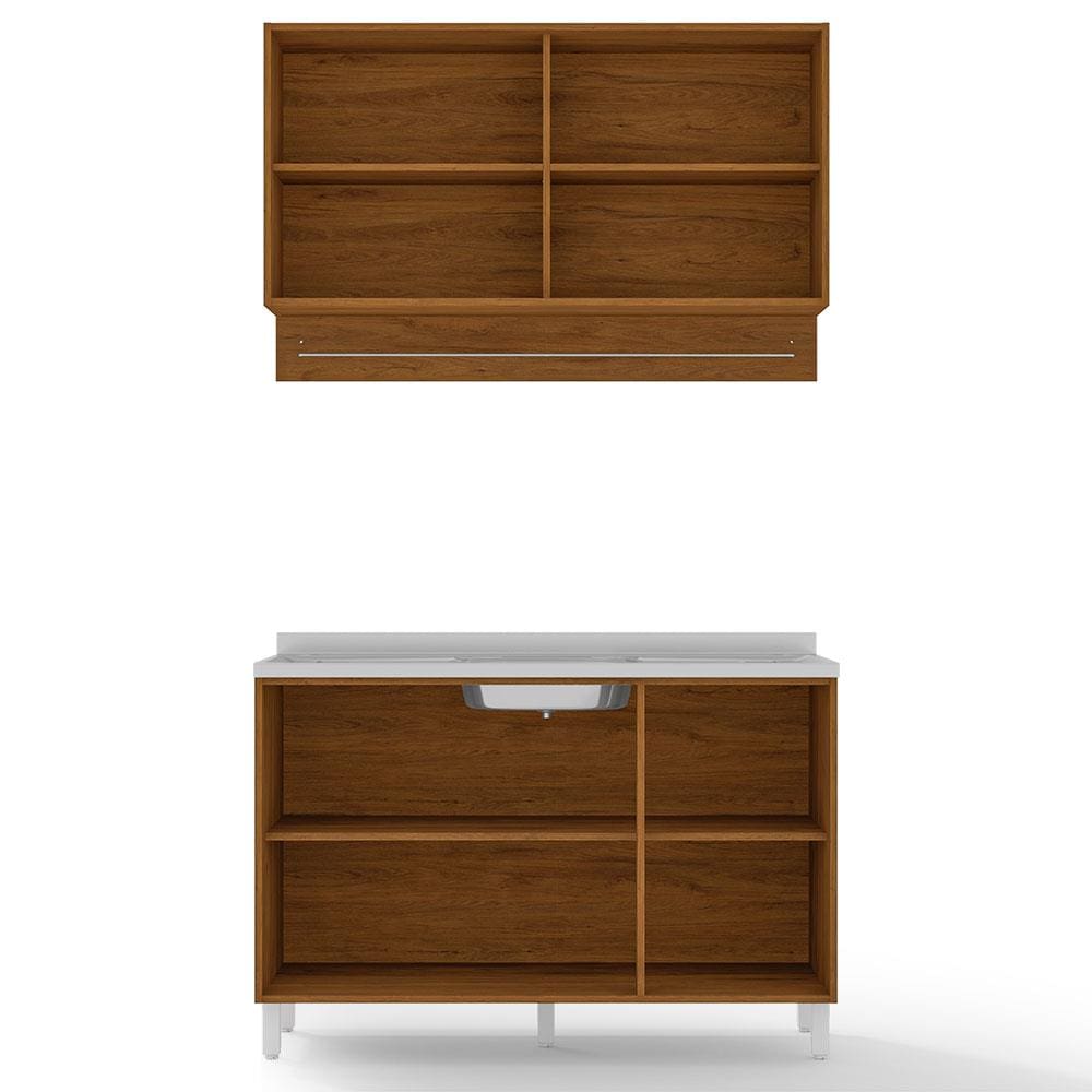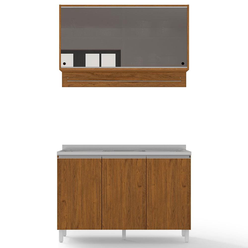 Já o balcão dispõe de lindas portas e prateleiras que levarão toda a funcionalidade que você precisa para guardar panelas, potes e mantimentos, tudo com mais praticidade e organização. Ele também conta com pés fixos de alta qualidade, além de regulagem de altura. E mais, esse conjunto ainda vem acompanhado de uma espaçosa e resistente pia feita em aço inox.