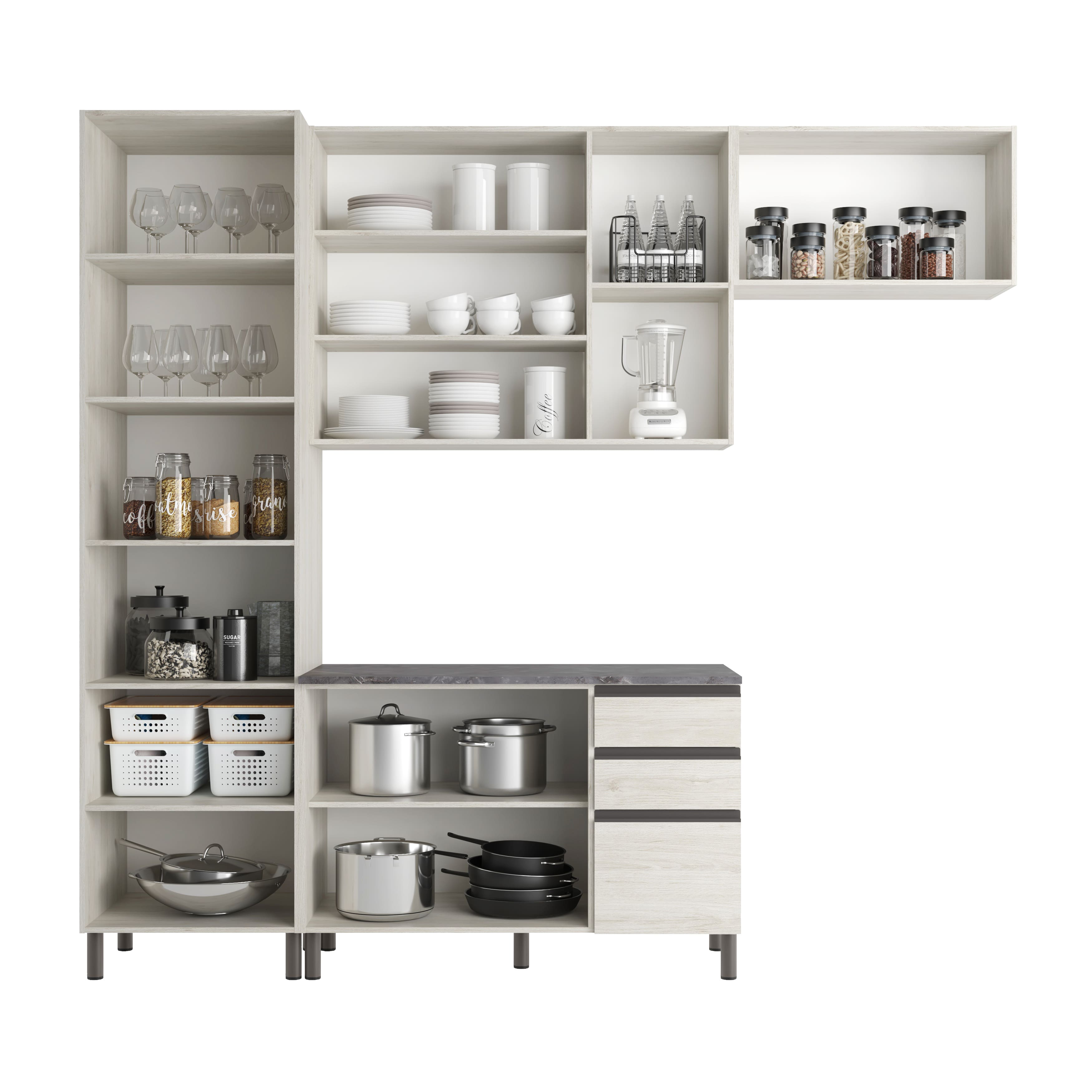 Conteúdo da Embalagem: -1 Cozinha Compacta Bartira Cristal com 8 Portas, 3 Gavetas e 9 Prateleiras - 260cm de Largura;