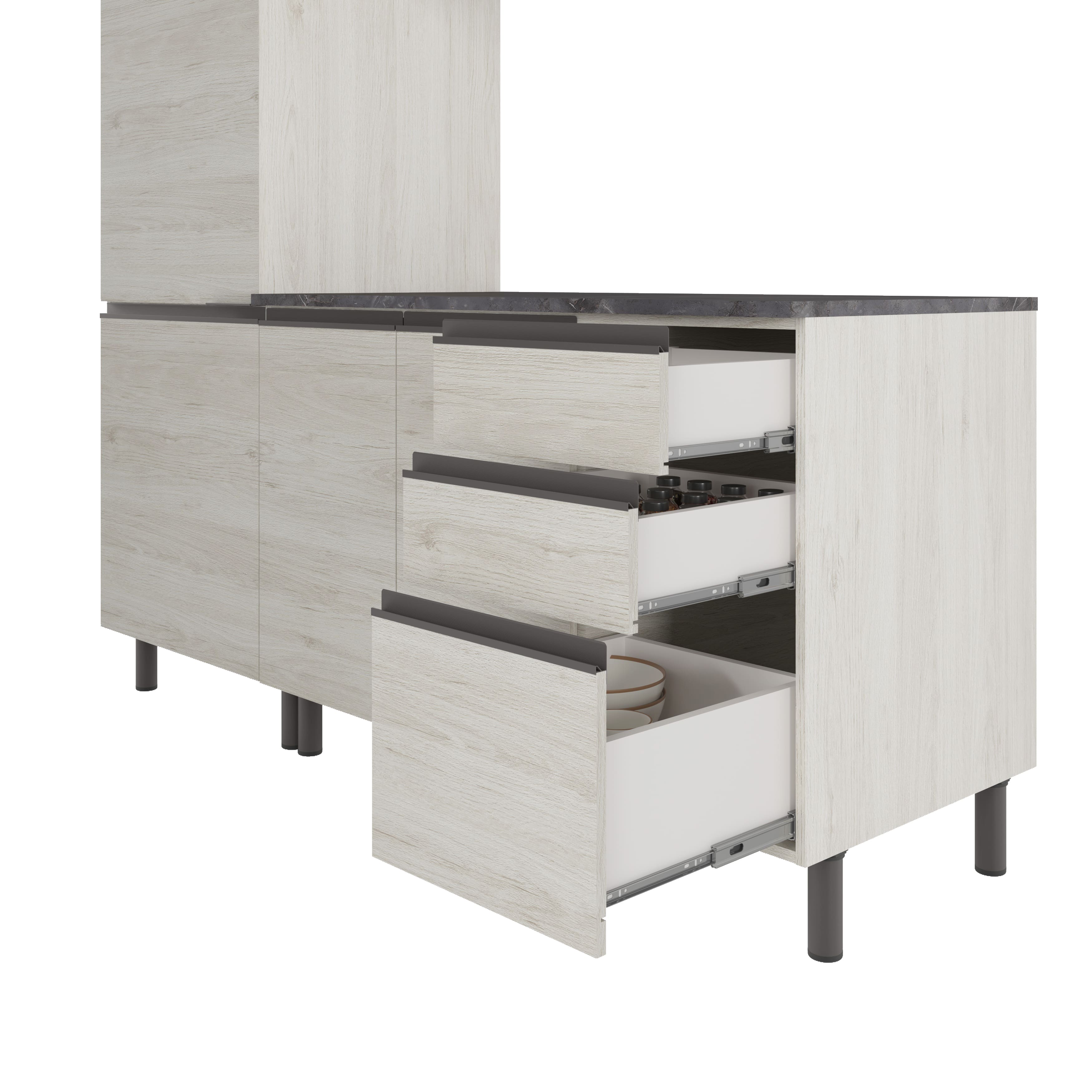 Cozinha Compacta Bartira Cristal com 8 Portas, 3 Gavetas e 9 Prateleiras - 260cm de Largura