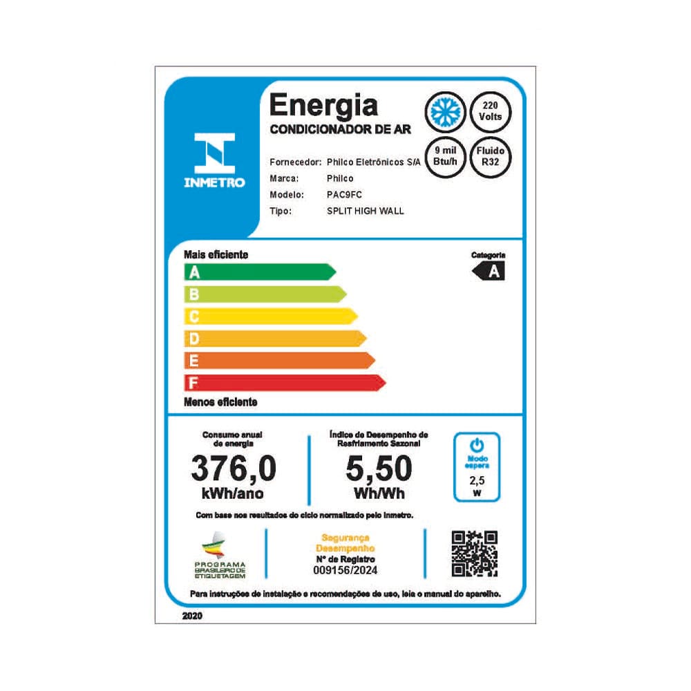 Ar-Condicionado Split Philco PAC9FC 9.000 BTUs: eficiência energética e sustentabilidade em um só produto. Com gás ecológico R32, o modelo oferece menor consumo de energia e excelente capacidade de refrigeração, sendo ideal para quem busca conforto com responsabilidade ambiental.