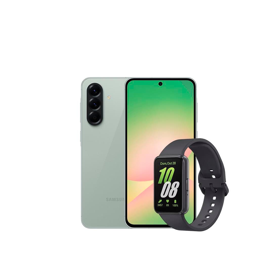 Smartphone Samsung Galaxy A56 5G Verde 256GB Design Sofisticado e Resistência O smartphone Samsung Galaxy A56 5G 256GB na cor verde combina um design minimalista com durabilidade excepcional. Seu acabamento sofisticado proporciona um manuseio confortável, enquanto a certificação IP67 garante resistência à água e poeira, protegendo contra respingos e partículas indesejadas. Além disso, sua construção robusta e até seis anos de atualizações de Android e segurança fazem deste celular uma escolha confiável para quem busca longevidade e desempenho contínuo. Desempenho Poderoso e Experiência Imersiva Equipado com uma tela Super AMOLED de 6.7" com Vision Booster, o Galaxy A56 5G oferece cores vibrantes e brilho intenso, garantindo uma experiência visual imersiva mesmo sob luz solar. Para alto desempenho, o processador Exynos 1580 (4nm) e a câmara de vapor maior tornam a jogabilidade mais fluida. Já sua bateria de 5.000mAh com carregamento rápido de até 45W permite longas horas de uso sem interrupções. Com 8GB de RAM e 256GB de armazenamento, este smartphone oferece velocidade, conectividade avançada e praticidade para o dia a dia. Galaxy Fit3 Grafite Display de 1.6” Tecnologia e Desempenho para o Seu Bem-Estar A Galaxy Fit3 Grafite eleva o conceito de pulseiras inteligentes ao unir design moderno, leveza e conforto para o dia a dia. Com mais de 100 modos de exercícios, ela monitora automaticamente atividades como corrida, elíptico e natação, proporcionando dados precisos sobre seu desempenho. Seu avançado sistema de rastreamento de saúde acompanha padrões de sono, treinos e outros indicadores essenciais, tudo integrado ao Samsung Health para uma visão completa do seu bem-estar. Conectividade e Praticidade no Seu Pulso Mais do que um acessório fitness, a Galaxy Fit3 mantém você sempre conectado. Receba notificações de chamadas, mensagens e lembretes diretamente no pulso, sem precisar do celular por perto. Seja para treinos, trabalho ou momentos de descanso, essa pulseira inteligente se adapta ao seu estilo de vida e incentiva hábitos mais saudáveis. Adquira já a sua Galaxy Fit3 Grafite e aproveite uma rotina mais dinâmica, prática e inovadora!