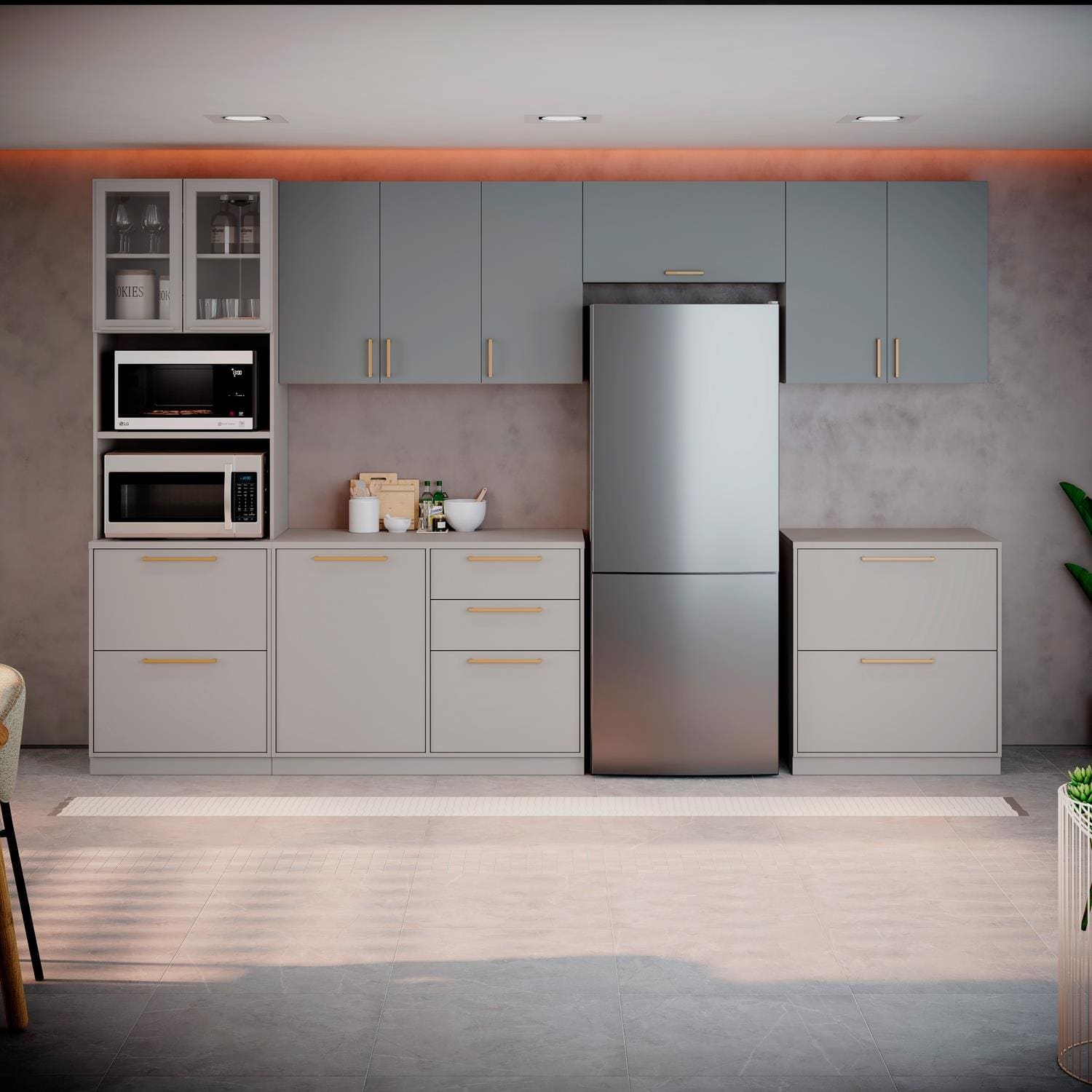 Cozinha Completa Itatiaia Essence 6 Peças Balcões Armários Paneleiro Fendi e Gris
