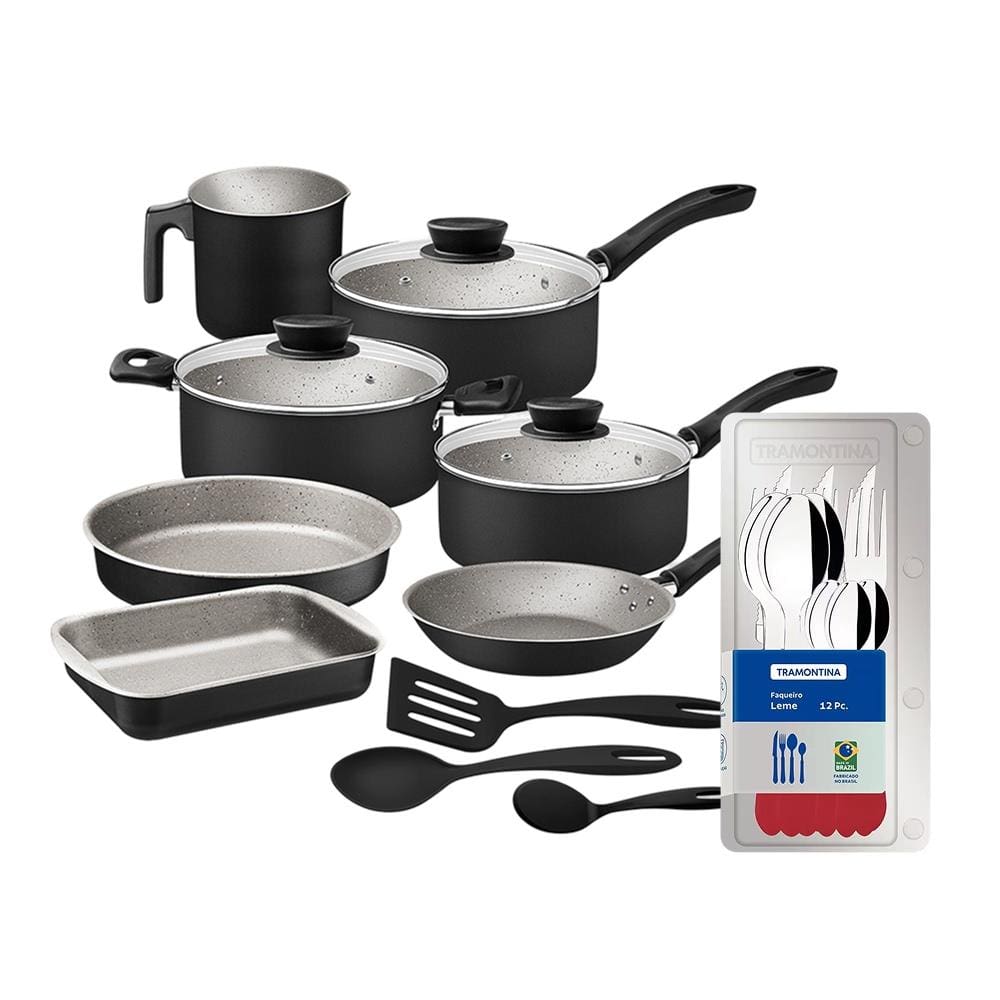 Conjunto Tramontina Linz Starflon Max 10 Peças Preto + Faqueiro Leme 12 Peças Inox Vermelho - Detalhes que fazem toda diferença na hora de servir!