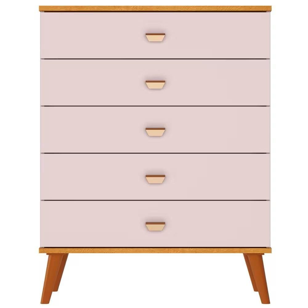 A Cômoda Infantil Bartira Ternura complementa o conjunto com 5 gavetas espaçosas, também com corrediças telescópicas, proporcionando organização eficiente para roupas e objetos pessoais. Seu design elegante e estrutura em MDP FF tornam o ambiente mais bonito e funcional.