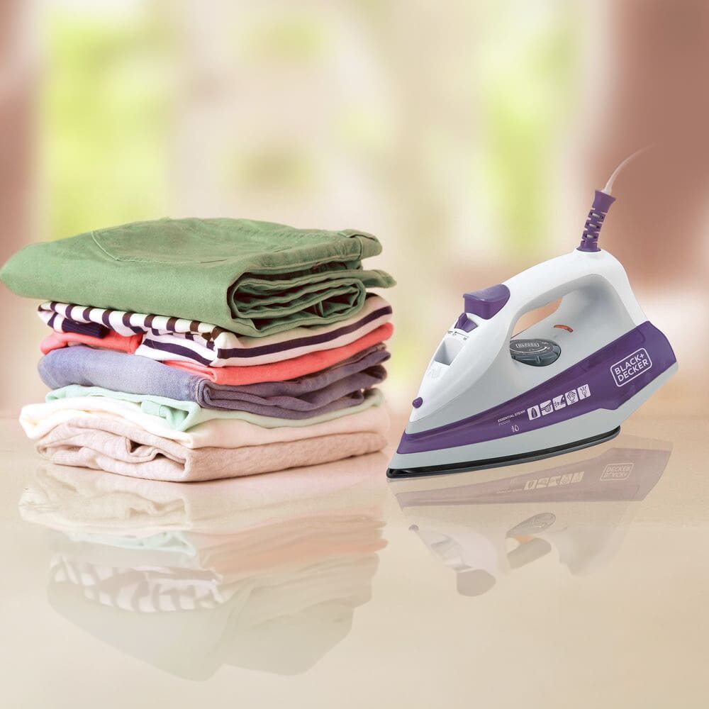 Ferro de Passar a Vapor Black Decker FX1000 com Base Antiaderente - Branco e Roxo