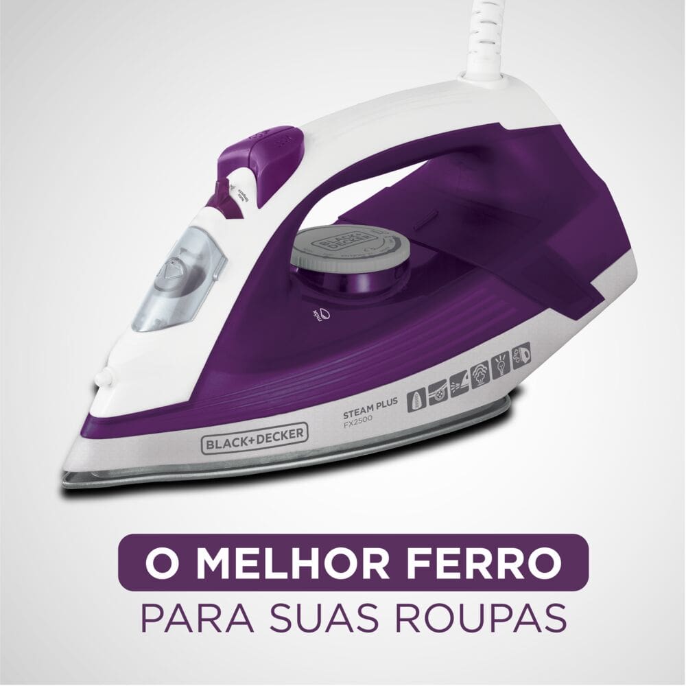 Conteúdo da Embalagem: - 01 Ferro a Vapor Black&Decker FX2500 Ceramic Gliss com Spray – Roxo