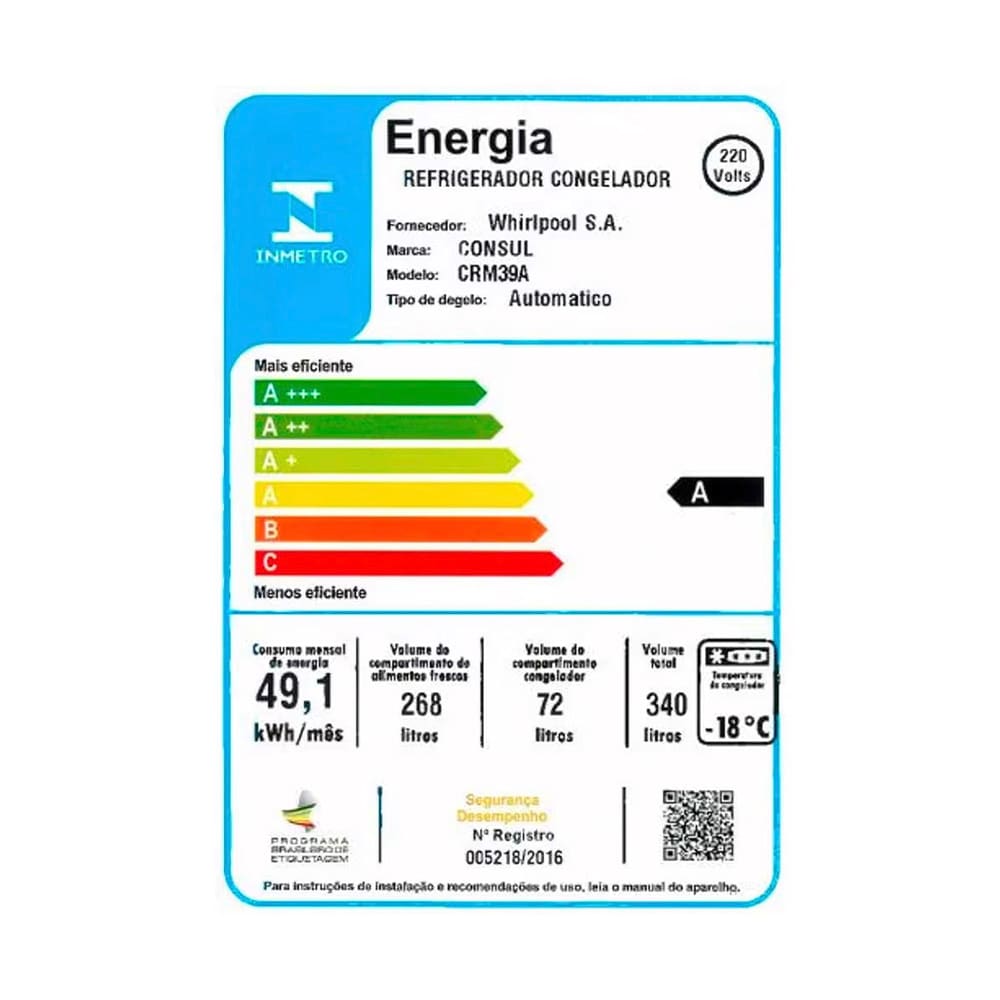 Além disso, conta com a Tecnologia EVOX, que protege sua geladeira da ferrugem e corrosão e conta com 3 anos de garantia*. (*Contra ferrugem e corrosão na porta da sua geladeira).
