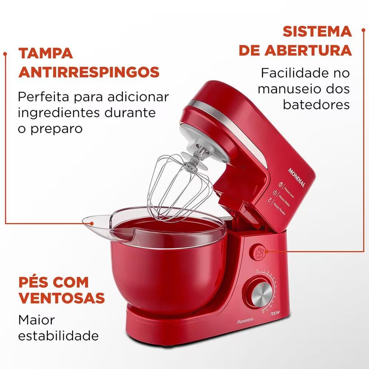 Batedeira Planetária Mondial BP-03 com 12 Velocidades e 700W - Vermelha