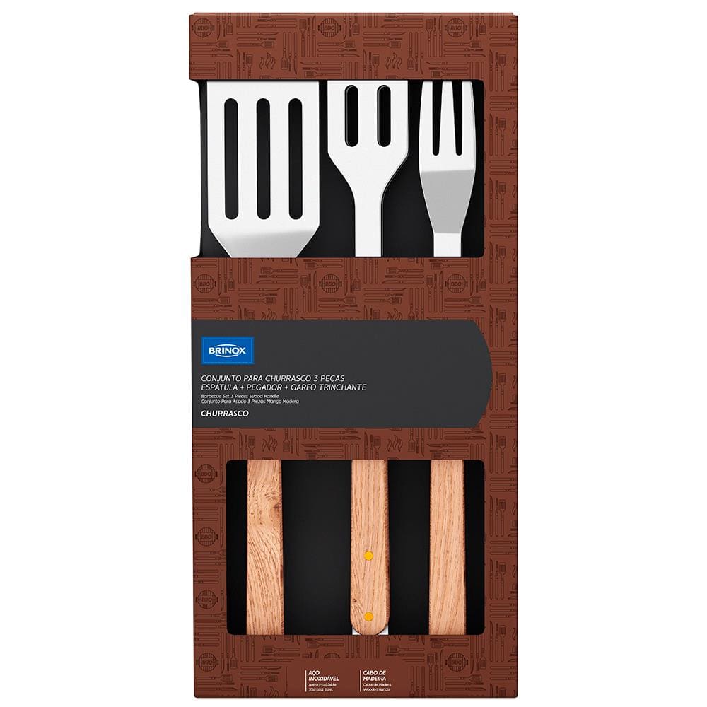 Conjunto de Espátula, Pegador e Garfo para Churrasco Brinox – 3 Peças