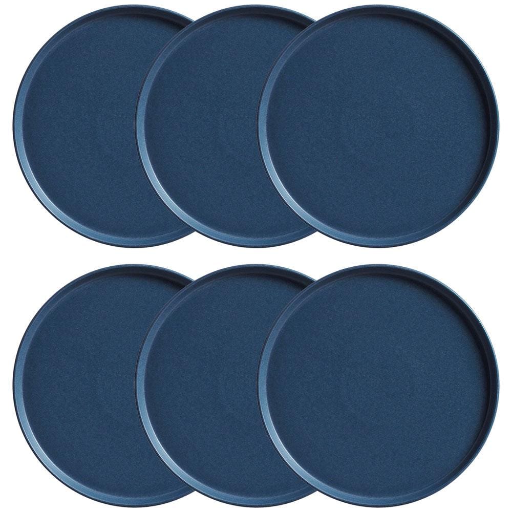 Conjunto com 6 Pratos Rasos Porto Brasil Neo Boreal em Stoneware 27 cm - Azul