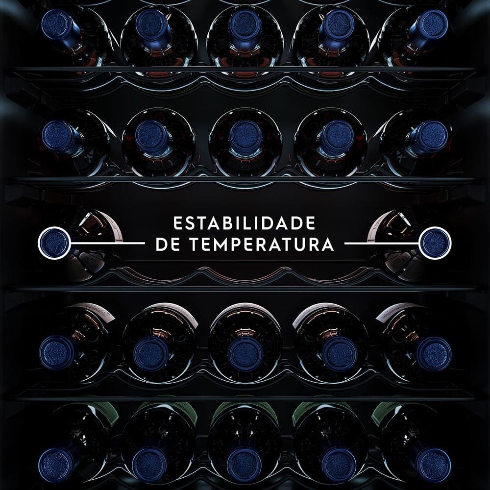 Características Gerais: - Estabilidade de Temperatura: tenha sempre os seus vinhos na temperatura ideal, preservando o sabor e o frescor. Com a porta de vidro duplo e compressor a temperatura se mantém estável e você pode ajustar conforme sua necessidade entre 5ºC a 18ºC.