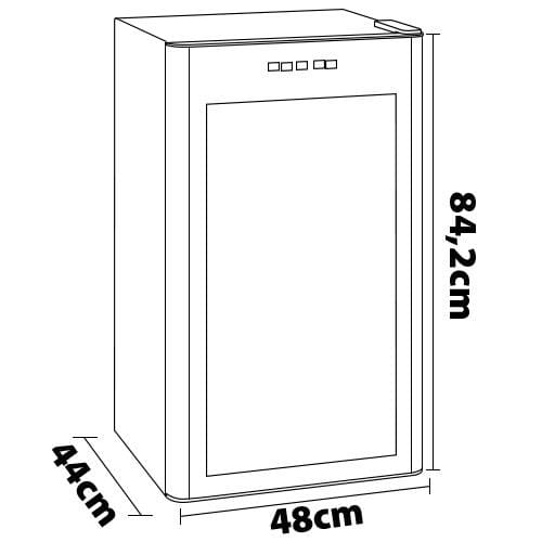 Ideal para 34 garrafas, a Adega tem um design único com 6 prateleiras e iluminação de LED interna que ajuda a manter o sabor e o frescor originais do vinho, já que é possível ver os rótulos sem a necessidade de abrir a porta.