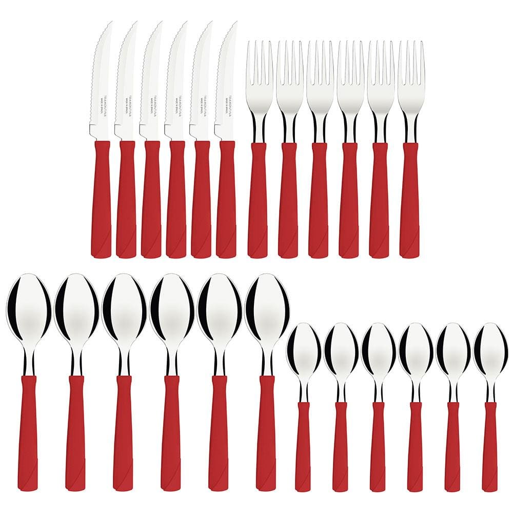 Faqueiro 25 Peças Tramontina New Kolor em Aço Inox com Gaveteiro - Vermelho
