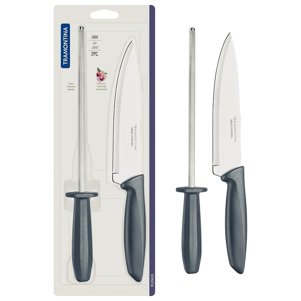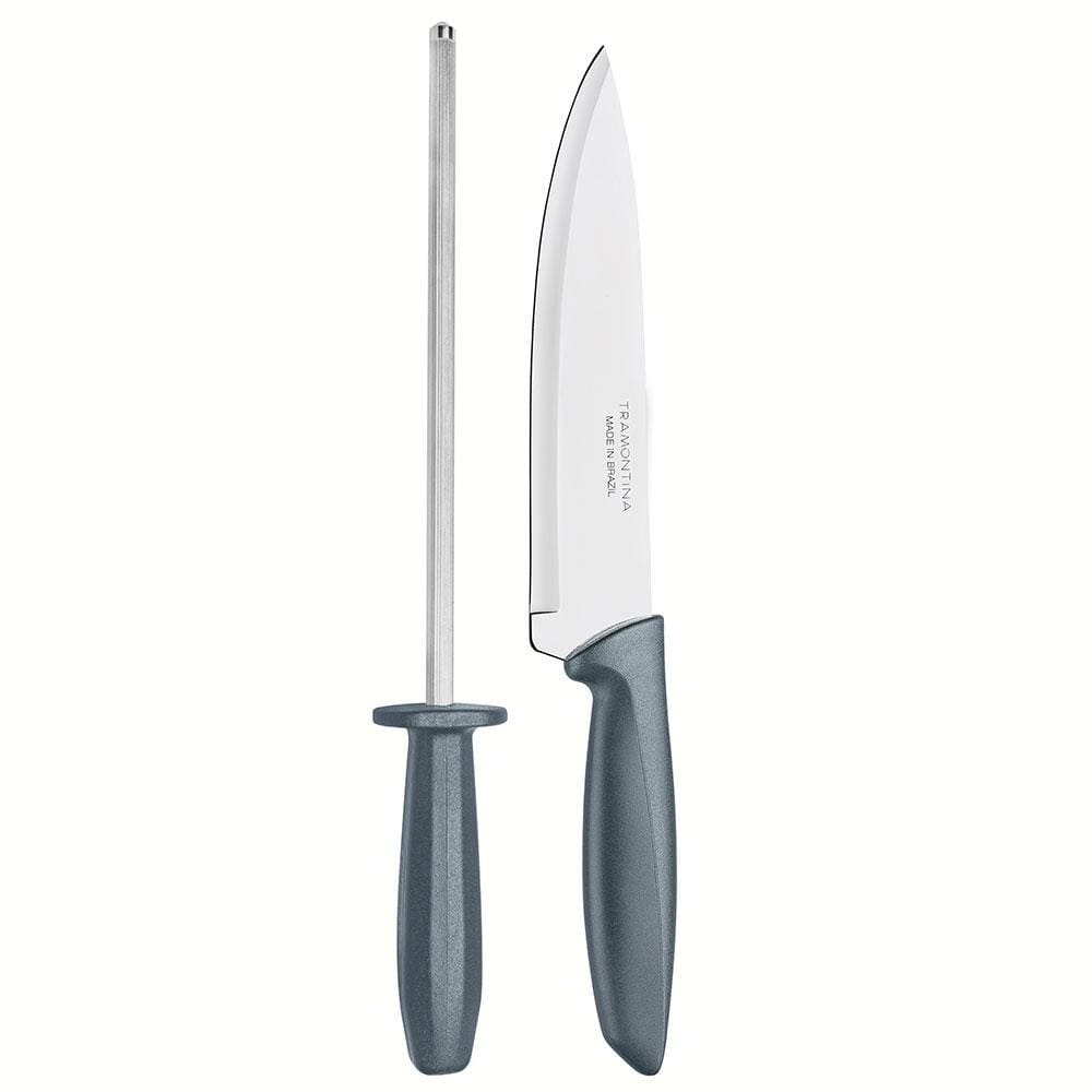 Conjunto Faca Chef e Chaira Tramontina Plenus Cinza - 2 Peças