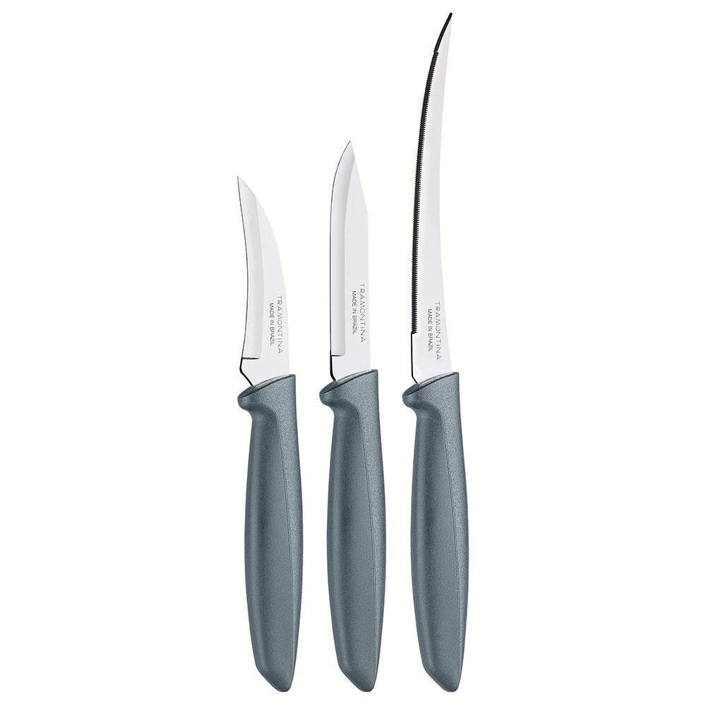 Conjunto de Facas Tramontina Plenus em Aço Inox e Polipropileno - Cinza - 3 Peças