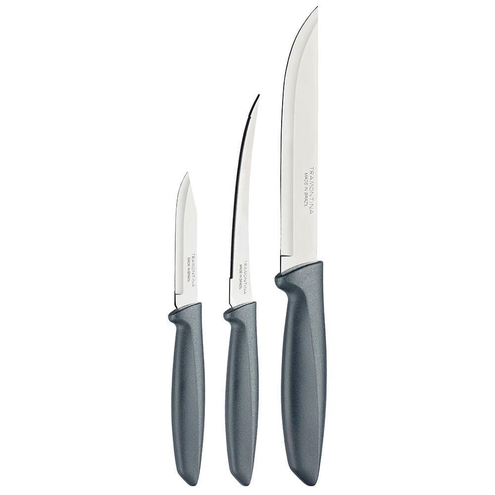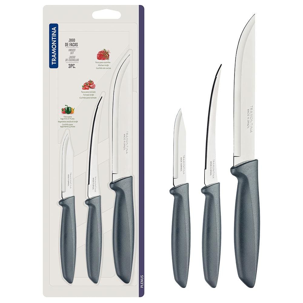 Conjunto de Facas Tramontina Plenus em Aço Inox - Cinza - 3 Peças