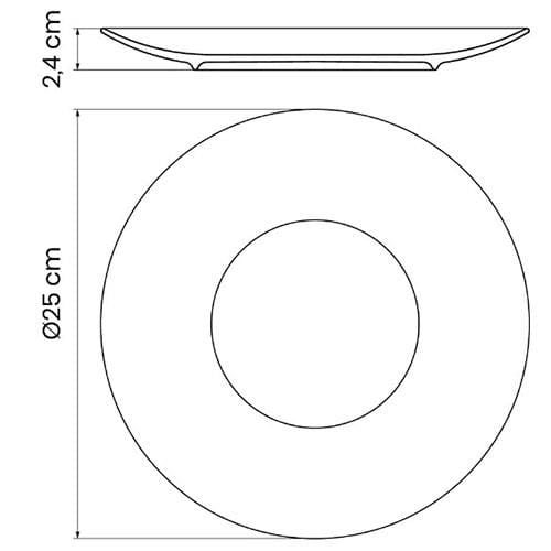 - Pratos Rasos: Ø 25 cm / Altura = 2,4 cm