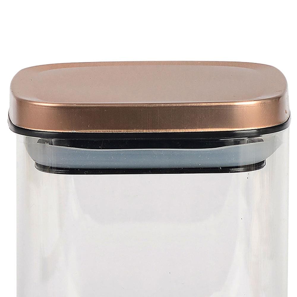 Porta Mantimentos Quadrado Dynasty em Vidro Borossilicato com Tampa de Metal Cobre – 800 ml