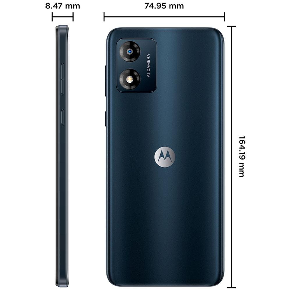 Smartphone Motorola Moto e13 Grafite 32GB, 2GB RAM, Tela de 6.5", Câmera Traseira de 13 MP, Selfies de 5 MP, Android 13 Go e Processador Octa Core