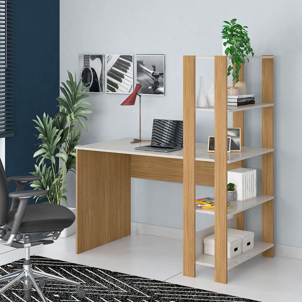 Conteúdo da Embalagem: - 1 Escrivaninha Artely Match com 3 Prateleiras, Espaço para Impressora e Nicho - 120cm de largura