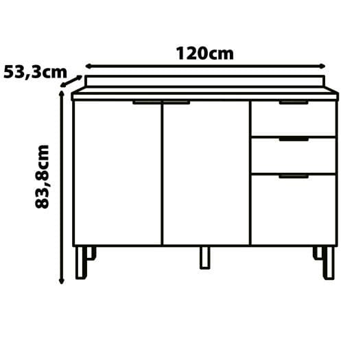 Balcão compatível com pia (cm): 120 x 53cm (LxP) - Vendida Separadamente