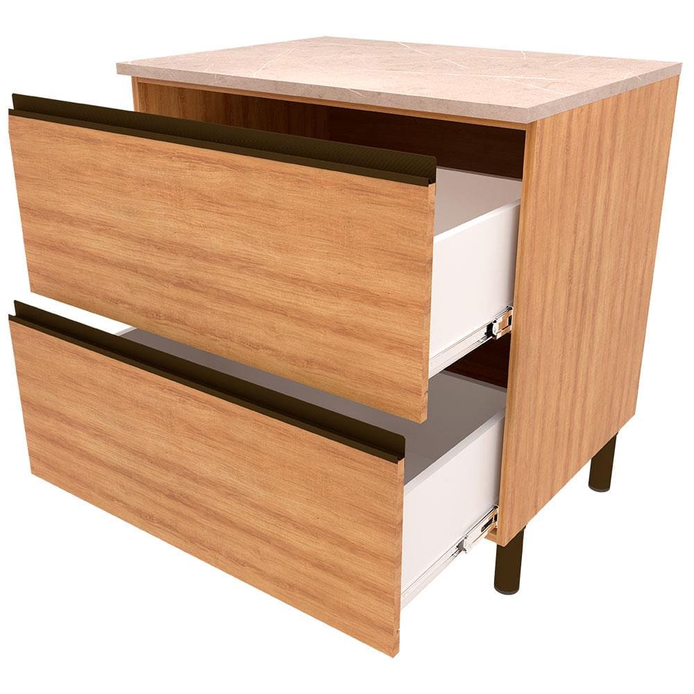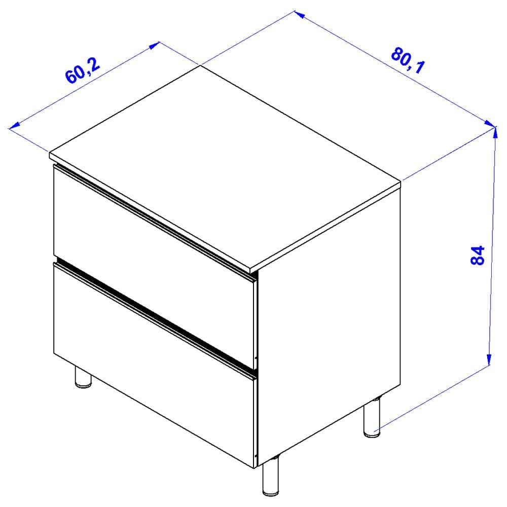 Equipado com gavetas com corrediças telescópicas em aço, esse móvel ainda conta em sua estrutura de puxador e pés em alumínio, acabamento em finish foil que possibilita maior vida útil ao produto e capacidade para suportar até 50kg bem distribuídos.