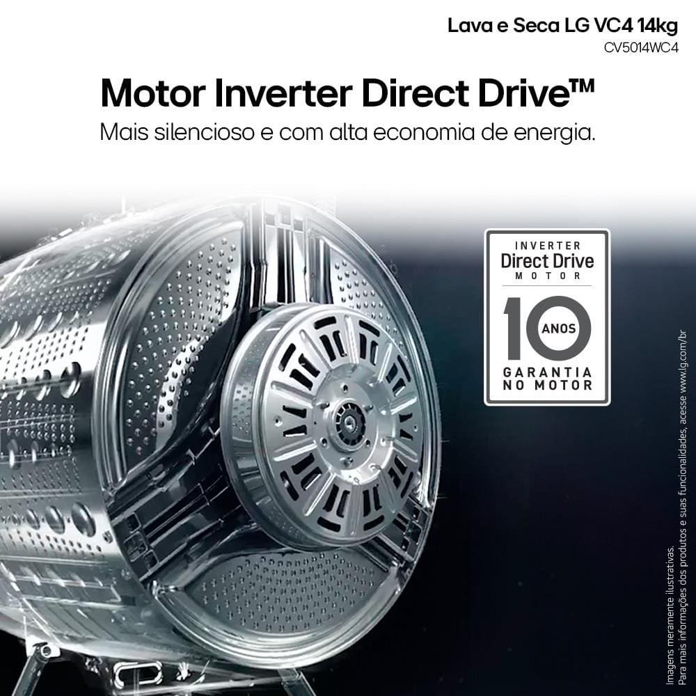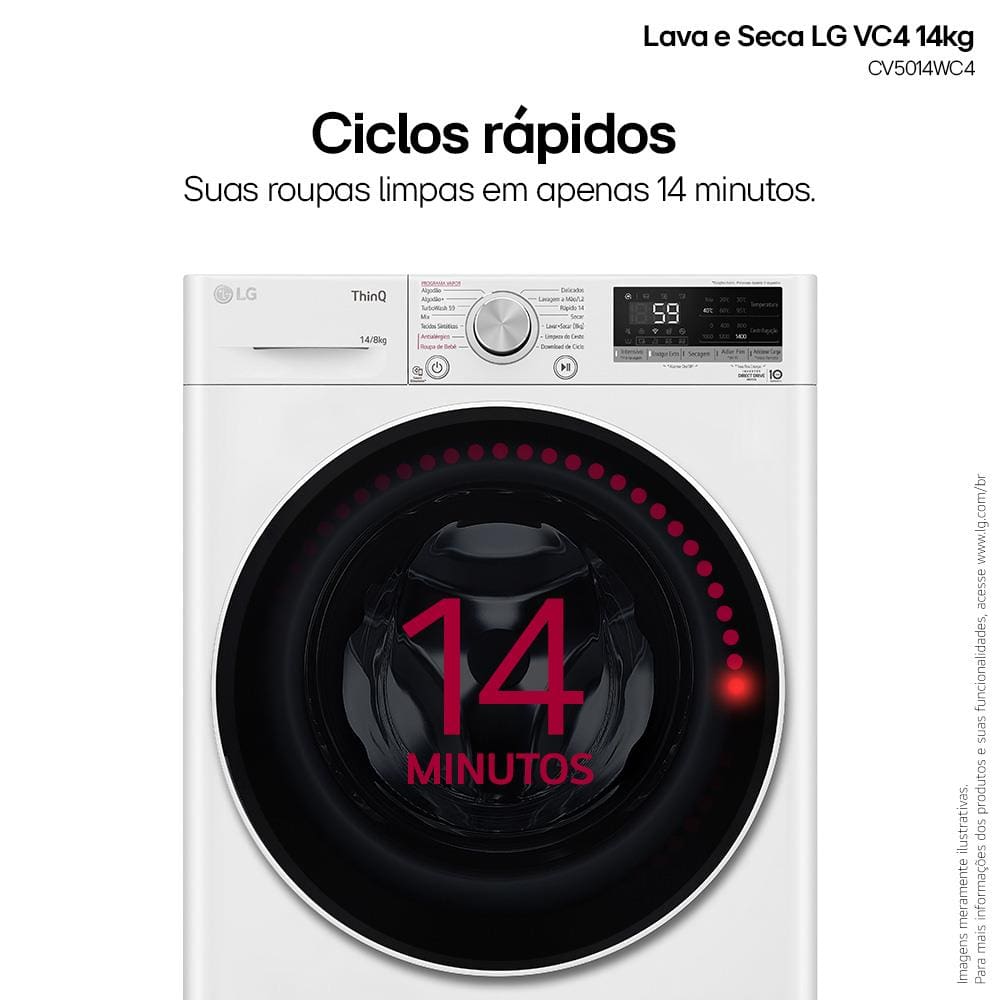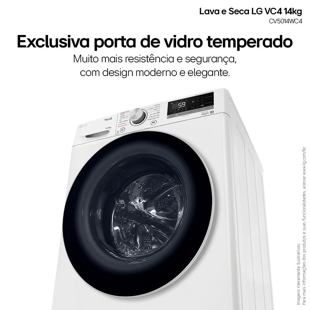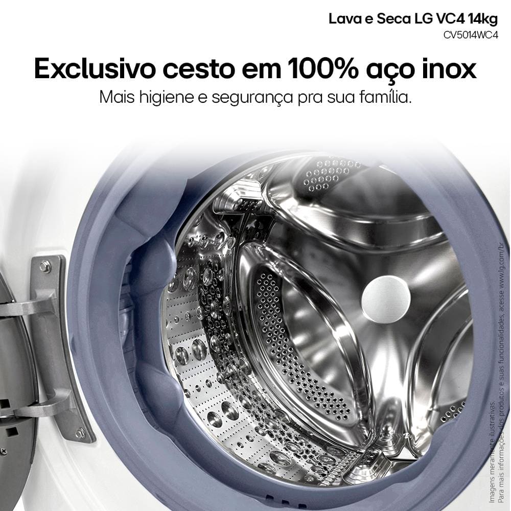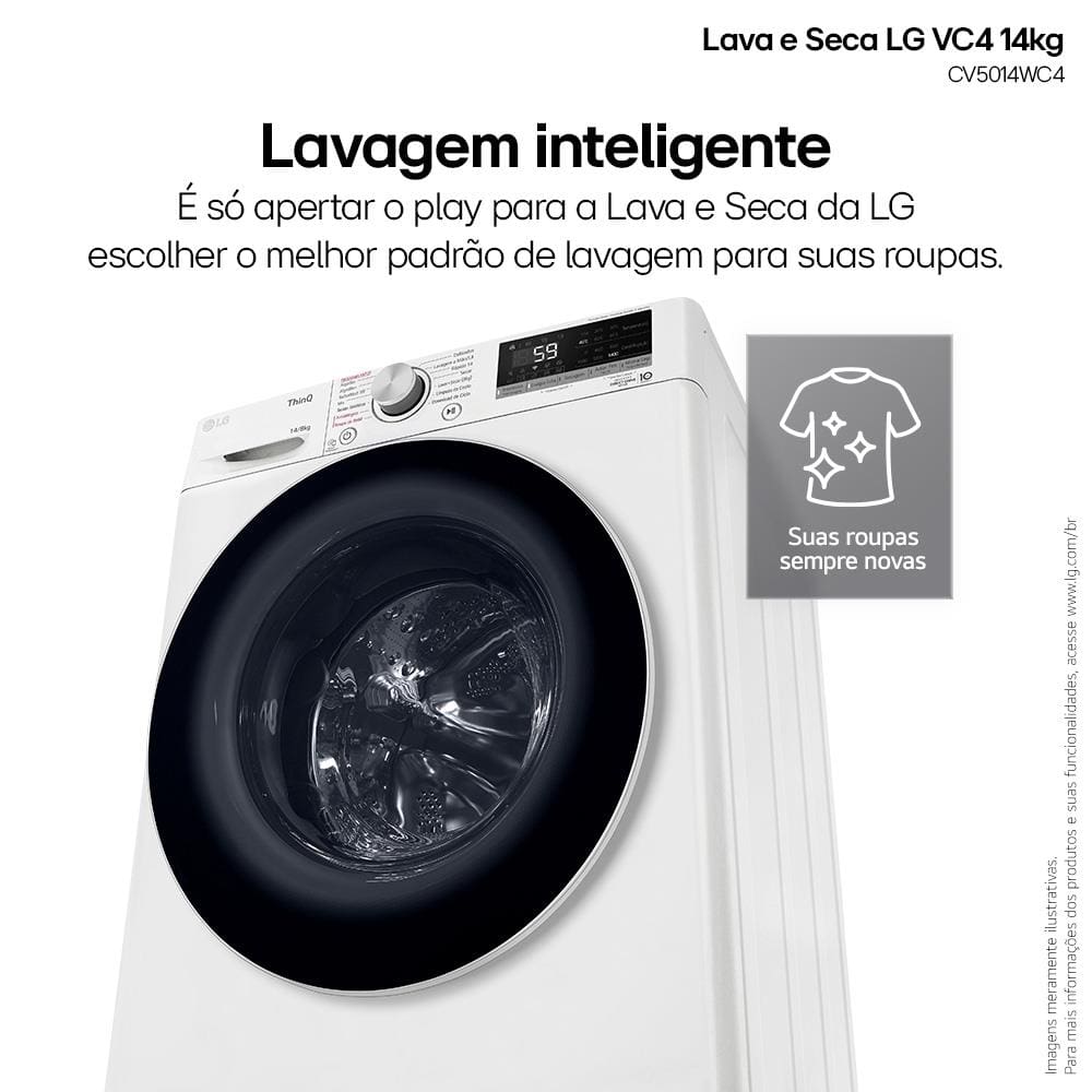 Conteúdo da embalagem: - 1 Lava e Seca LG 14Kg/8Kg Smart VC4 com Inteligência Artificial AI DD™ CV5014WC4 - Branca
