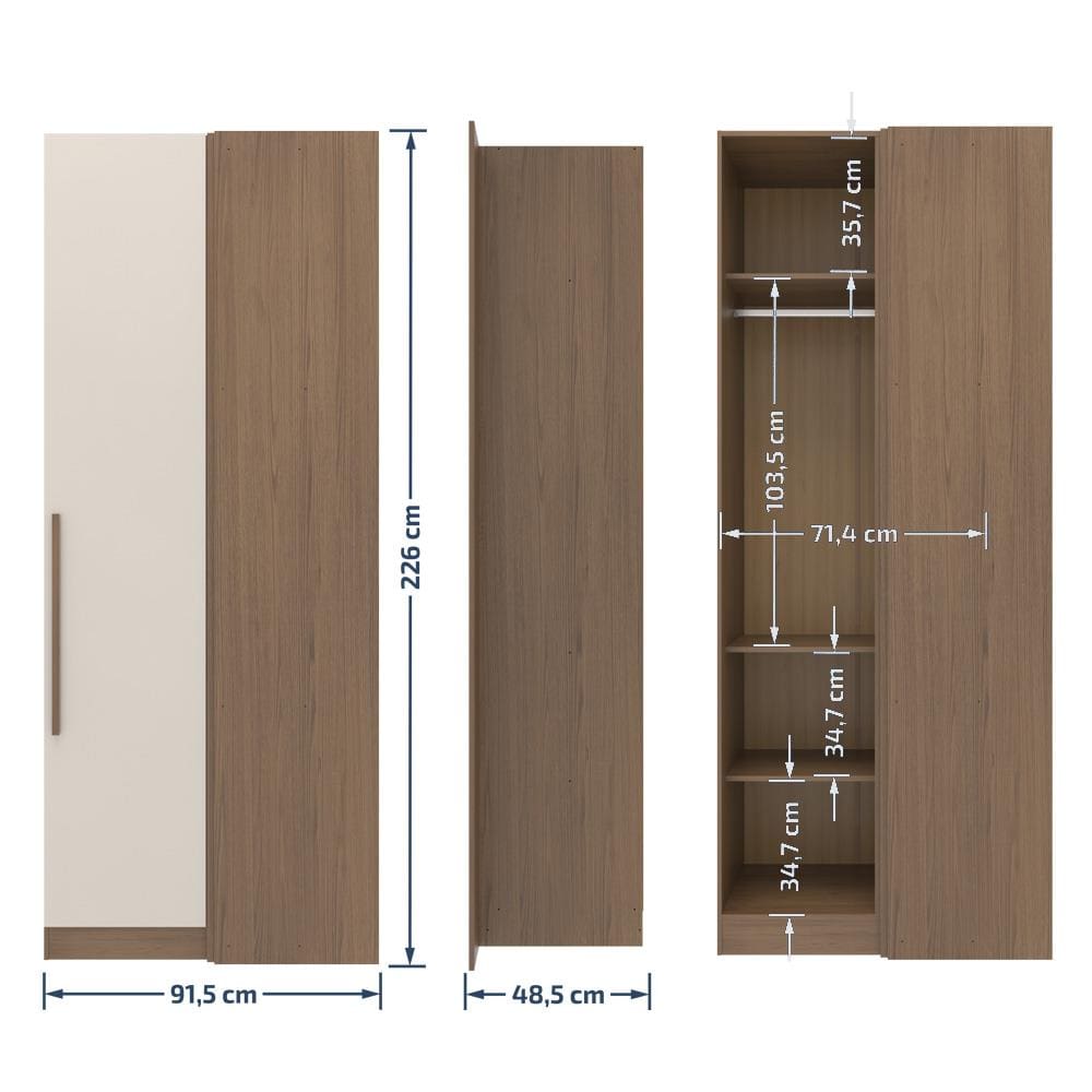 Conteúdo da Embalagem: Armário Modulado de Canto Bartira Lugano com 1 Porta e 2 Prateleiras Casal - Avelã/Capuccino