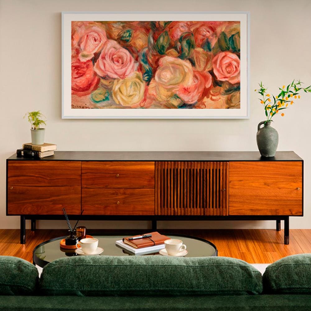 A Samsung Smart TV 55” QLED 4K The Frame cria uma experiência que ultrapassa a fronteira entre o físico e o digital, exibindo tão cores vibrantes quanto uma obra de arte!