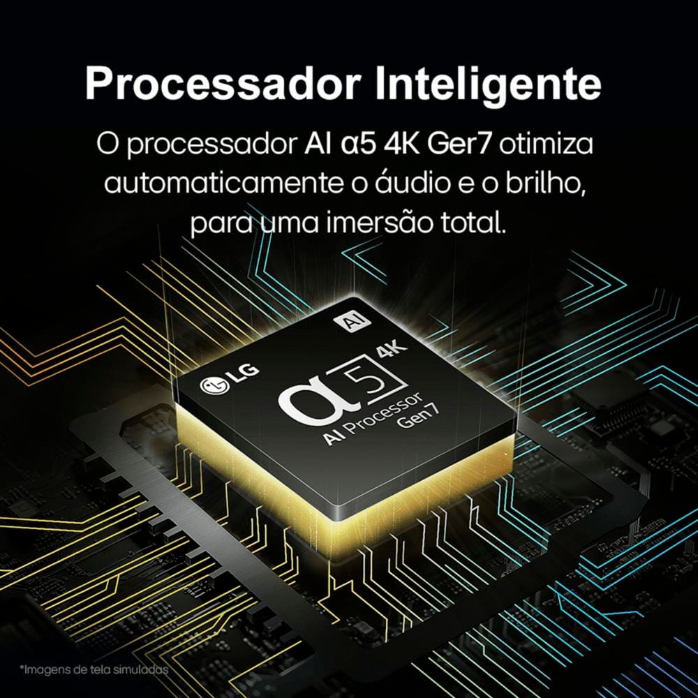 Vivencie um entretenimento superior com o processador inteligente AI Alpha 5 4K Ger7. Esse processador otimiza automaticamente o áudio e o brilho, proporcionando uma imersão total na ação. Cada detalhe é aprimorado, garantindo uma experiência visual e sonora mais rica e envolvente.