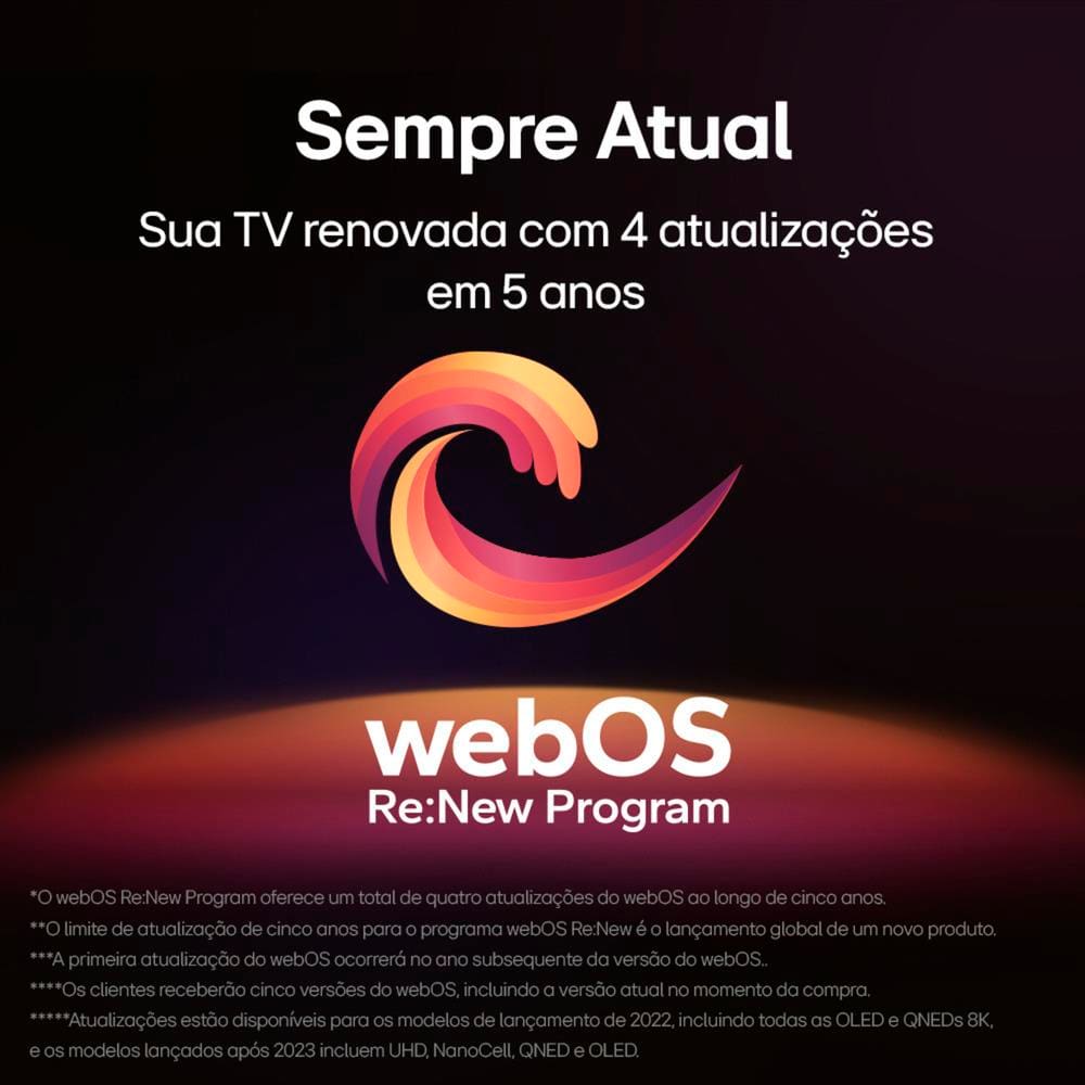 OBSERVAÇÃO - Este modelo de TV LG oferece uma experiência de visualização de alta qualidade e recursos inteligentes, mas não possui a funcionalidade Multi View (tela dividida). No entanto, você continua desfrutando da performance excepcional da sua TV LG.