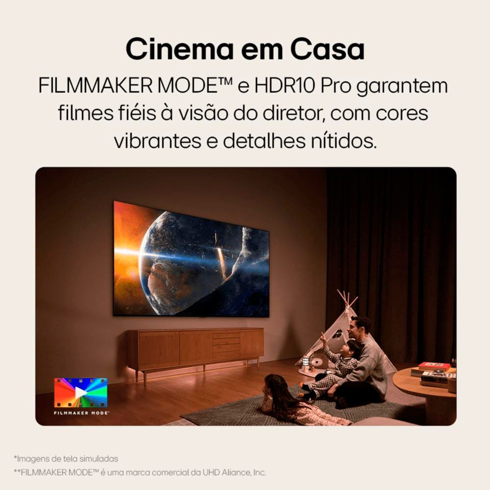 Veja seus filmes exatamente como os diretores sonharam com o Modo FILMMAKER. A TV LG ajusta automaticamente as configurações de imagem para preservar a visão criativa original dos cineastas, proporcionando uma experiência cinematográfica autêntica direto na sua sala de estar.